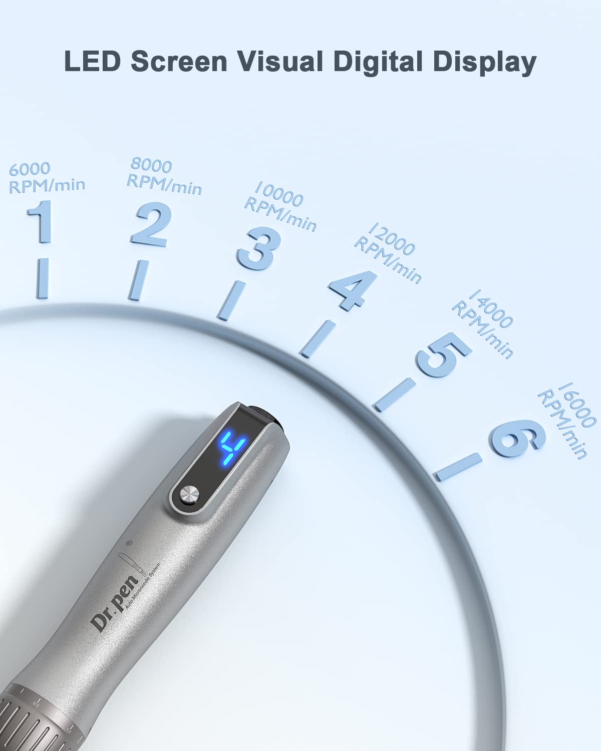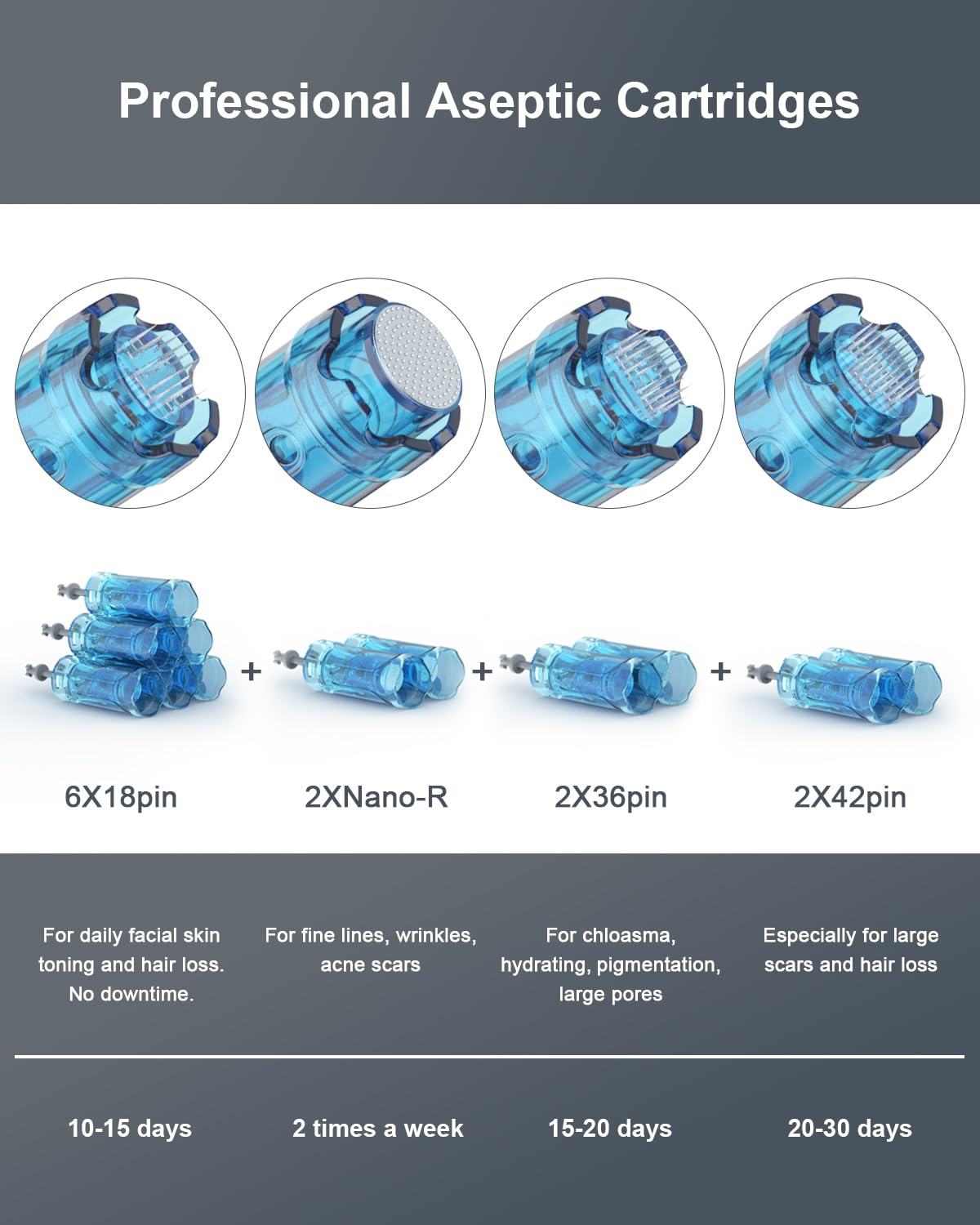 قلم Dr.Pen Ultima M8S Microneedling: قلم لاسلكي احترافي للعناية بالبشرة، للوجه والجسم، ونمو الشعر واللحية - 6 خراطيش بديلة