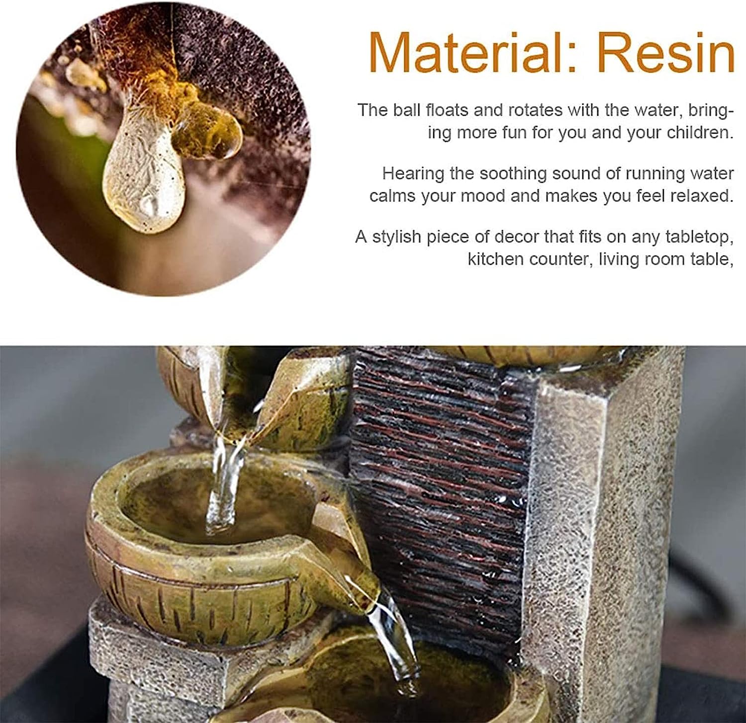 - المادة - نافورة المياه مصنوعة من راتنج البولي القوي وخفيفة الوزن ومتينة، مثالية للديكور المنزلي.