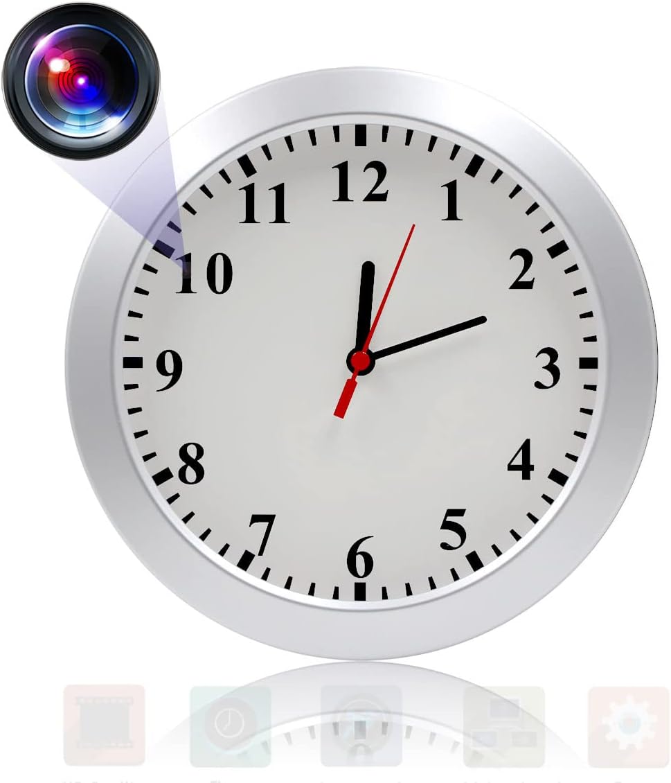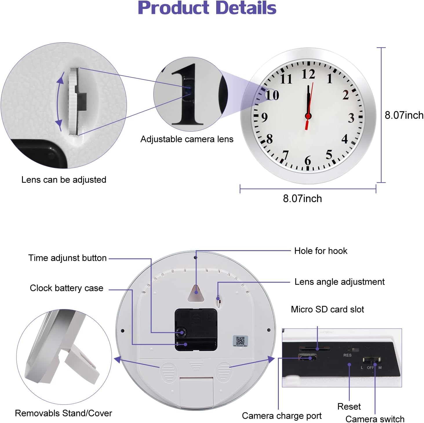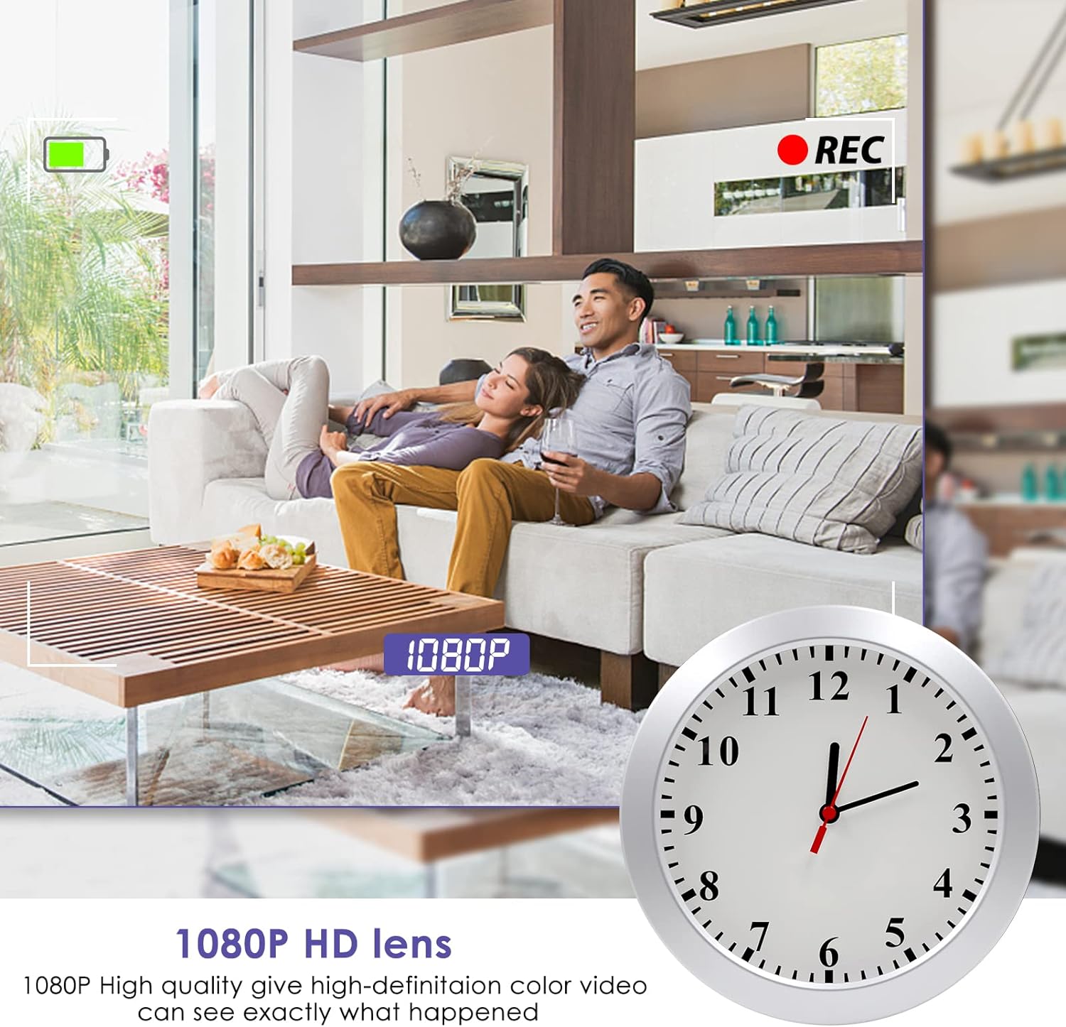 - ساعة كاميرا خفية، كاميرا تجسس عالية الدقة 1080 بكسل، ساعة حائط، كاميرا خفية مع كشف الحركة لأمن المنزل/المكتب، كاميرا مربية مخفية، بدون وظيفة واي فاي