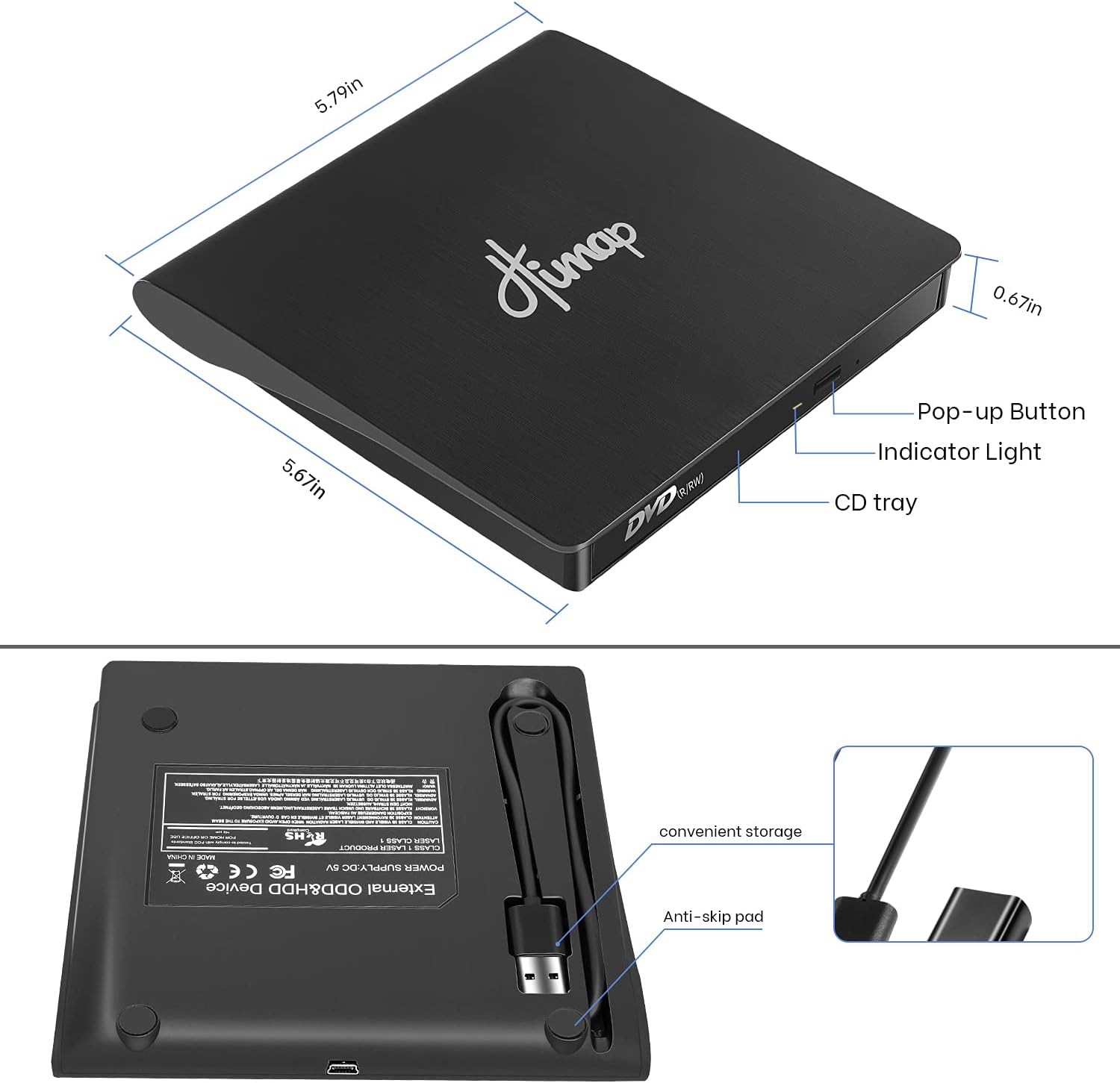 - Himap CD Drive External CD-ROM DVD Drive CD DVD Burner Optical Drive for Laptop Portable USB Drive Disc Reader Compatible with Laptop Desktop PC Windows Linux OS Apple Mac (Black)