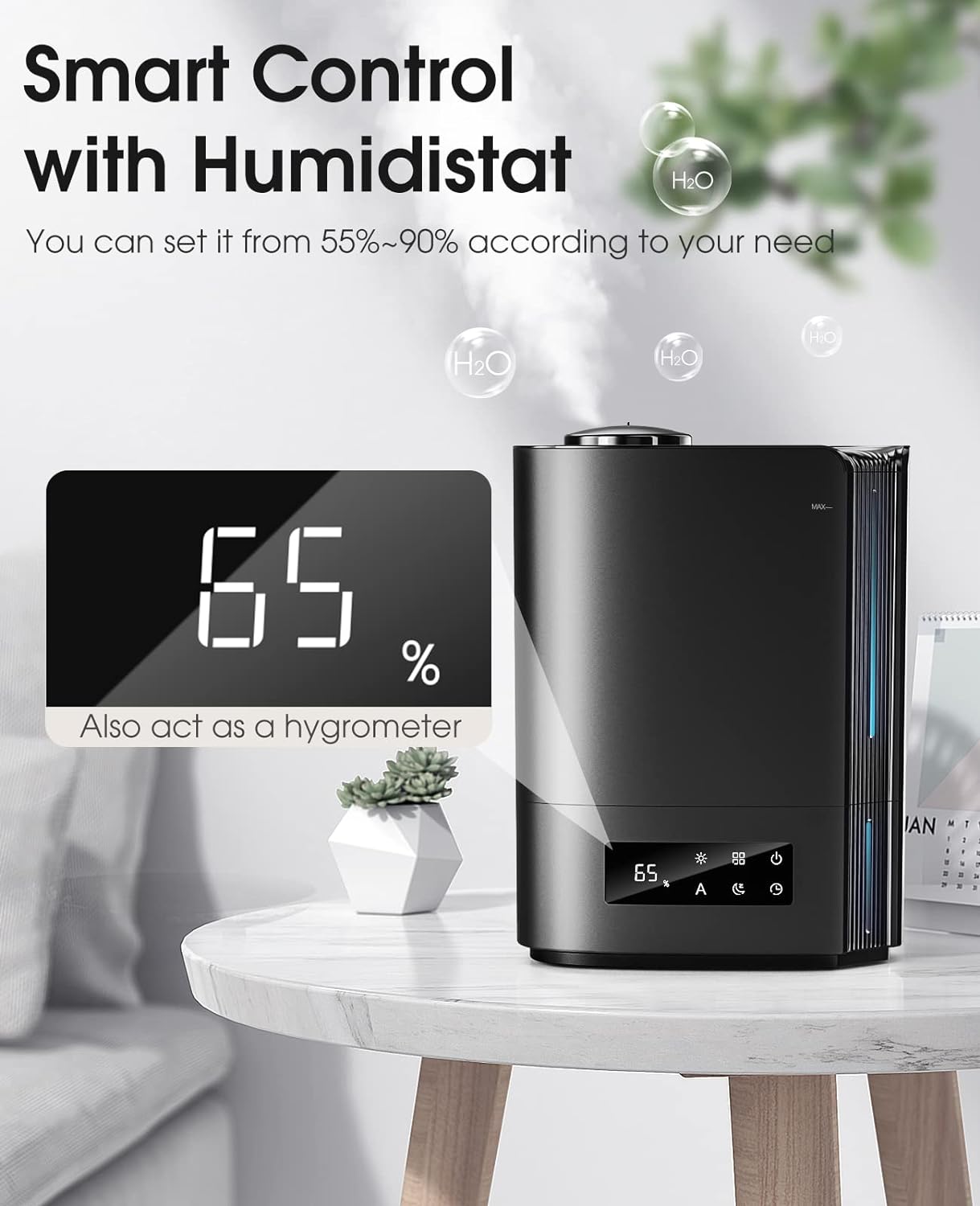 - مرطبات الهواء لغرفة النوم، مرطبات هواء برذاذ بارد سعة 6 لتر مع جهاز قياس الرطوبة ومؤقت، مرطب هواء TABYIK بملء علوي للغرف الكبيرة الهادئة، مع موزع للزيوت العطرية للمنزل والمكتب