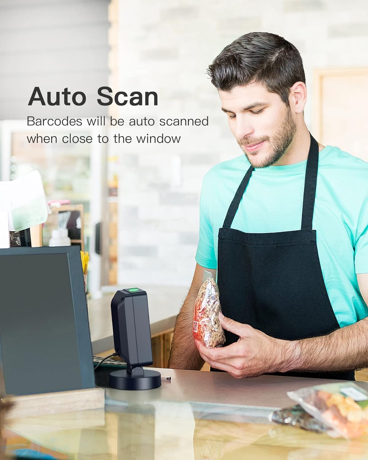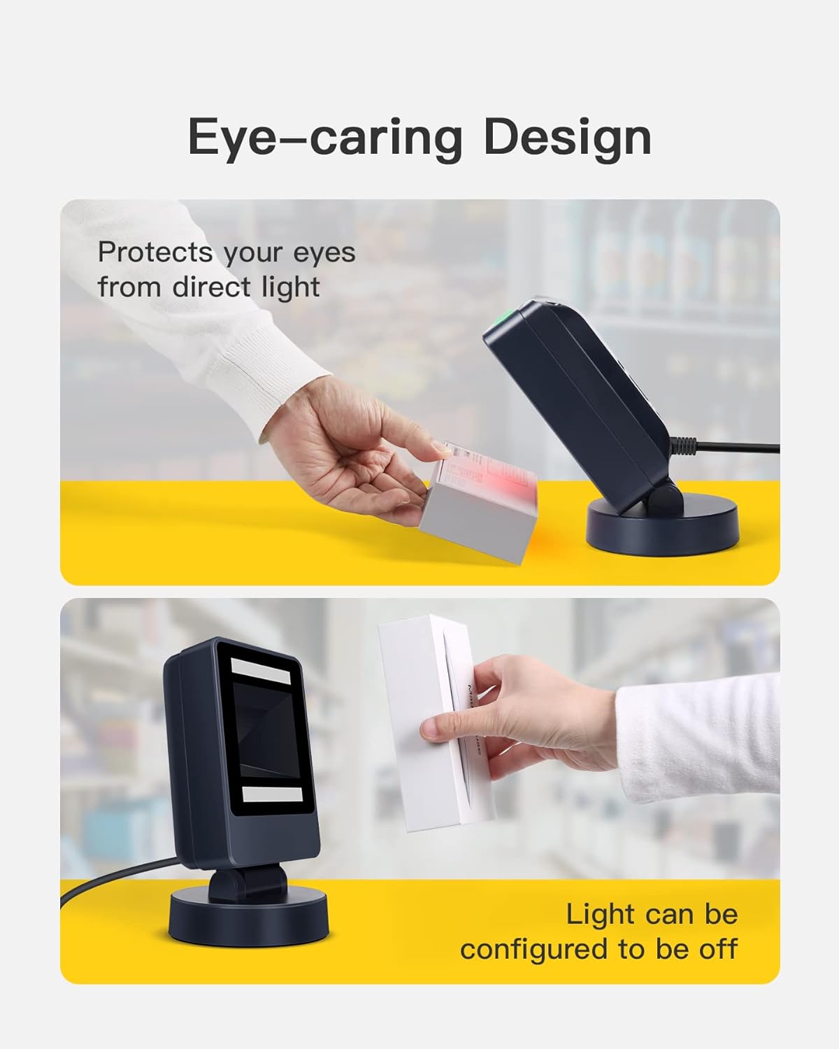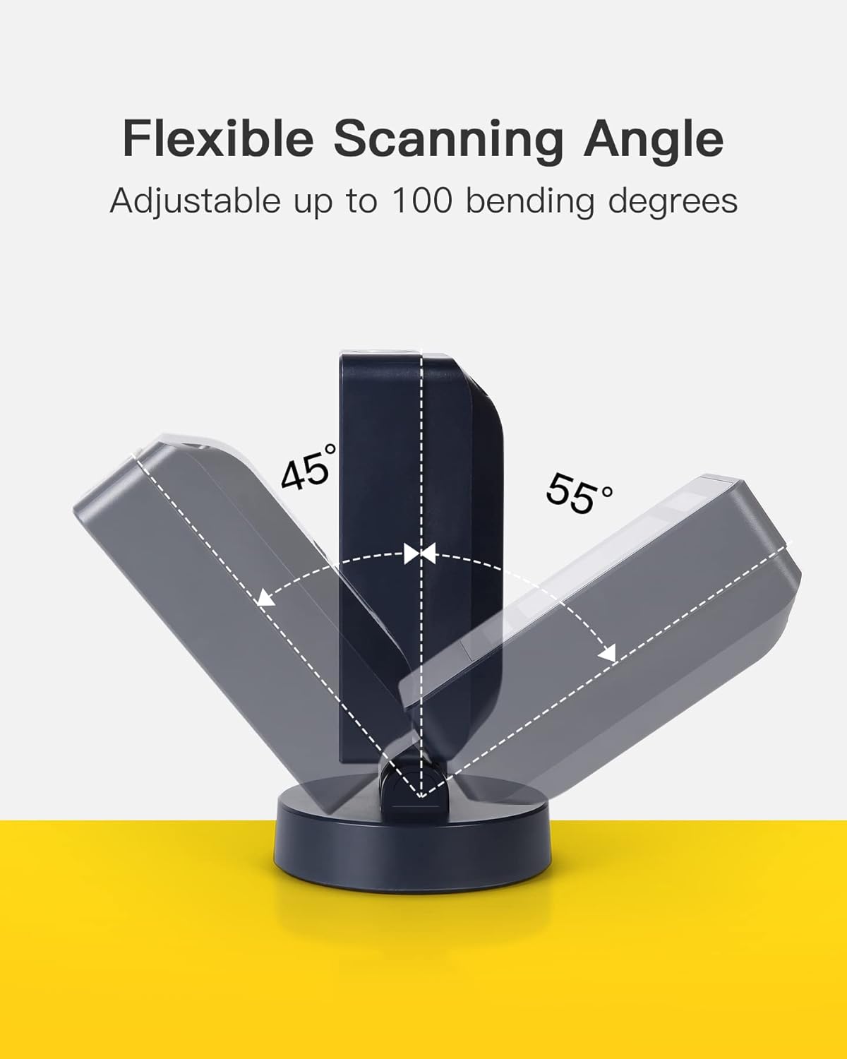 يمكن تعديل الماسح الضوئي حتى 100 درجة انحناء، مما يجعل من السهل مسح الباركود على العناصر ذات الأحجام المختلفة.