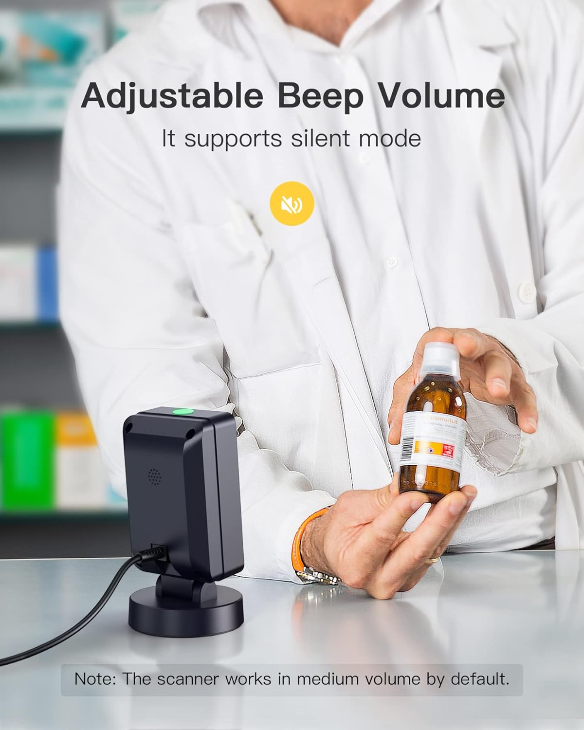 يمكنك اختيار مستوى الصوت العالي والمتوسط والمنخفض والبكم، مما يسمح لك باستخدام الماسح الضوئي في إعدادات مختلفة مثل محلات السوبر ماركت والمستشفيات والصيدليات والمكتبات.