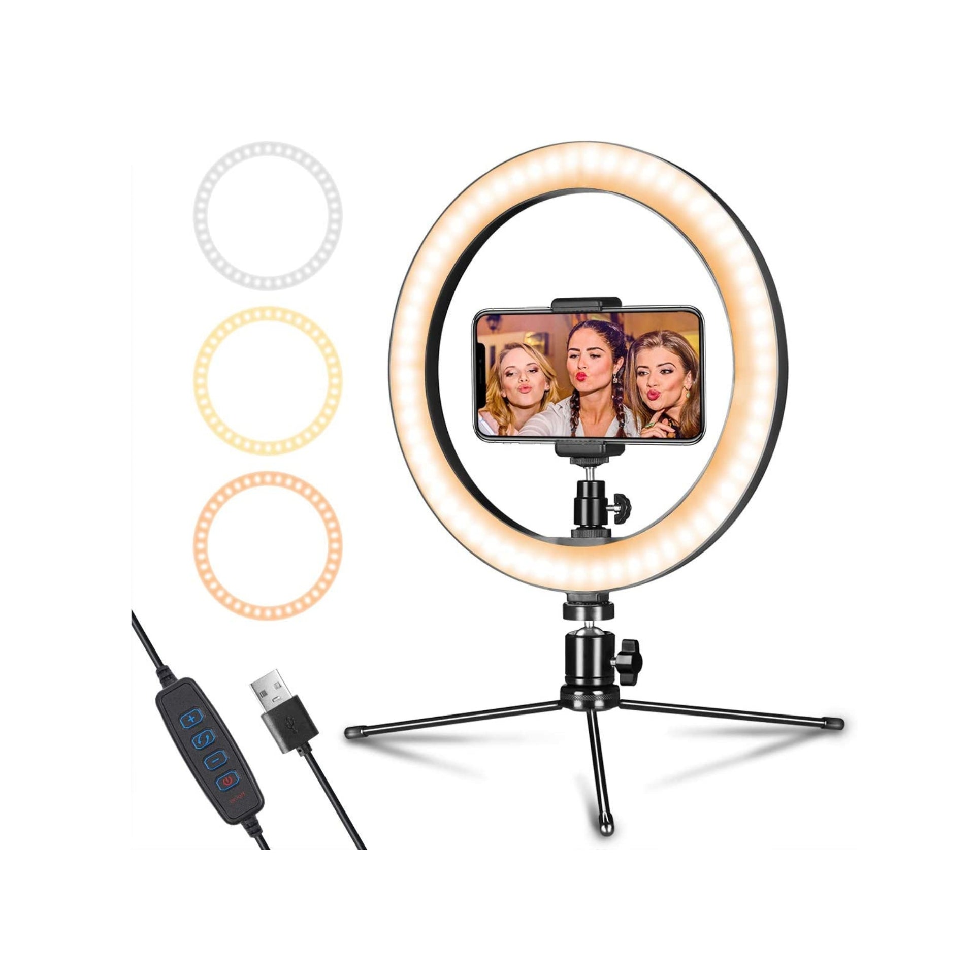 - حلقة إضاءة LED مقاس 10 بوصات مع حامل ثلاثي القوائم وحامل هاتف للبث المباشر ومقاطع فيديو YouTube، حلقة إضاءة مكياج مكتبية قابلة للتعتيم للتصوير الفوتوغرافي، والتصوير بثلاثة أوضاع إضاءة و10 مستويات سطوع