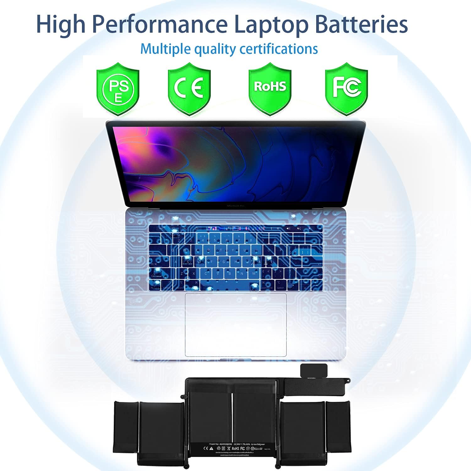 - جميع بطاريات الكمبيوتر المحمول لدينا لأجهزة MacBook لقد حصل شهادة CE/PSE/UL/FCC/RoHS ، متوافقة مع معايير السلامة وحماية البيئة!