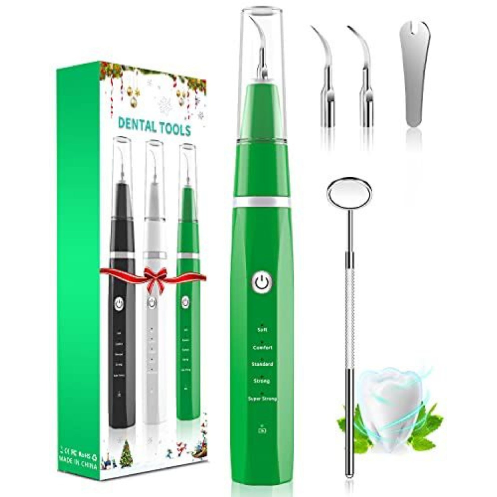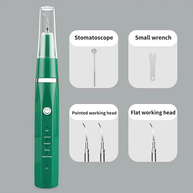 - سهلة الاستخدام: تتميز مجموعة تنظيف الأسنان لإزالة البلاك بخمسة أوضاع تبديل وتأتي مع 3 رؤوس بديلة من الفولاذ المقاوم للصدأ ومقبض صغير.