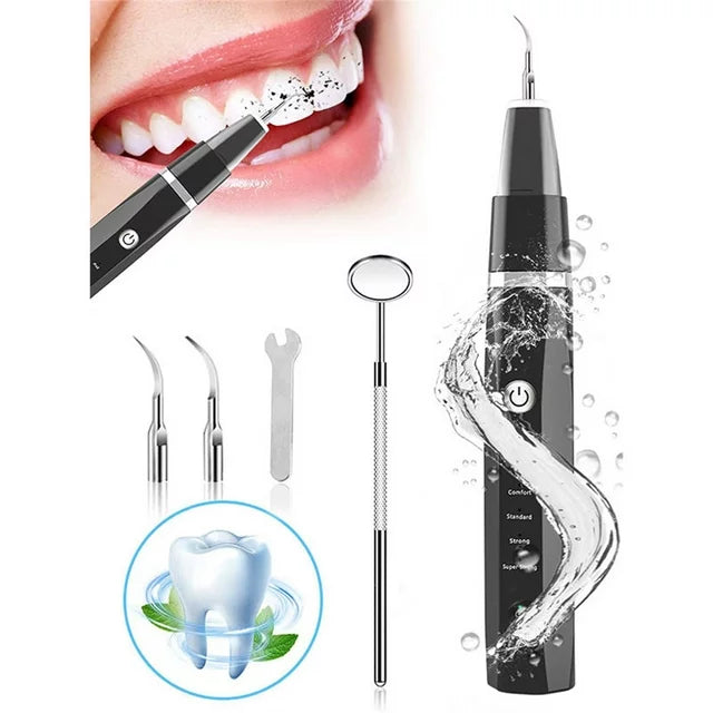 - جهاز إزالة البلاك القابل لإعادة الشحن، جهاز إزالة الجير بالموجات فوق الصوتية، طقم تنظيف الأسنان مع ضوء LED، 5 أوضاع قابلة للتعديل، 3 رؤوس تنظيف قابلة للاستبدال