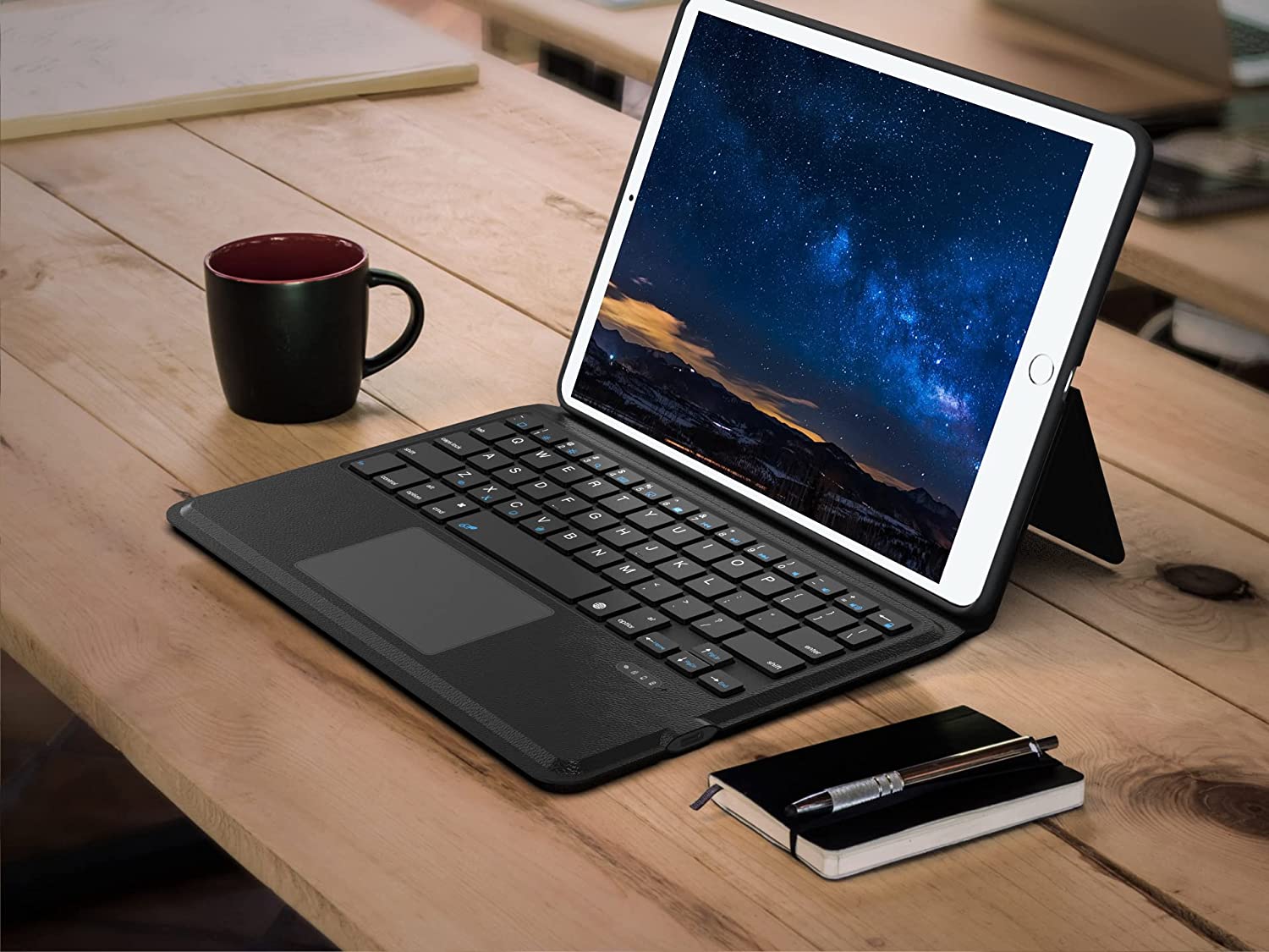 - حافظة لوحة مفاتيح Seagtigau مع لوحة تتبع لجهاز iPad 9.7 بوصة من الجيل السادس (2018)/الجيل الخامس (2017)، iPad Pro 9.7 بوصة، iPad Air 1 وAir 2، لوحة مفاتيح لاسلكية رفيعة مطورة بتصميم المملكة المتحدة