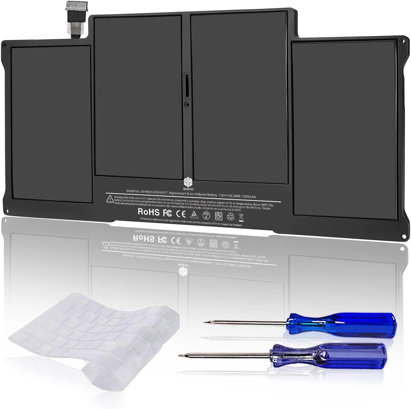 - بطارية بديلة SNSYIY لجهاز MacBook Air مقاس 13 بوصة A1466 (منتصف 2012، منتصف 2013، أوائل 2014، أوائل 2015، 2017) A1369 (أواخر 2010، منتصف 2011) بطارية كمبيوتر محمول 7200 مللي أمبير/ساعة لجهاز Apple MacBook Air A1496 A1377 A1405