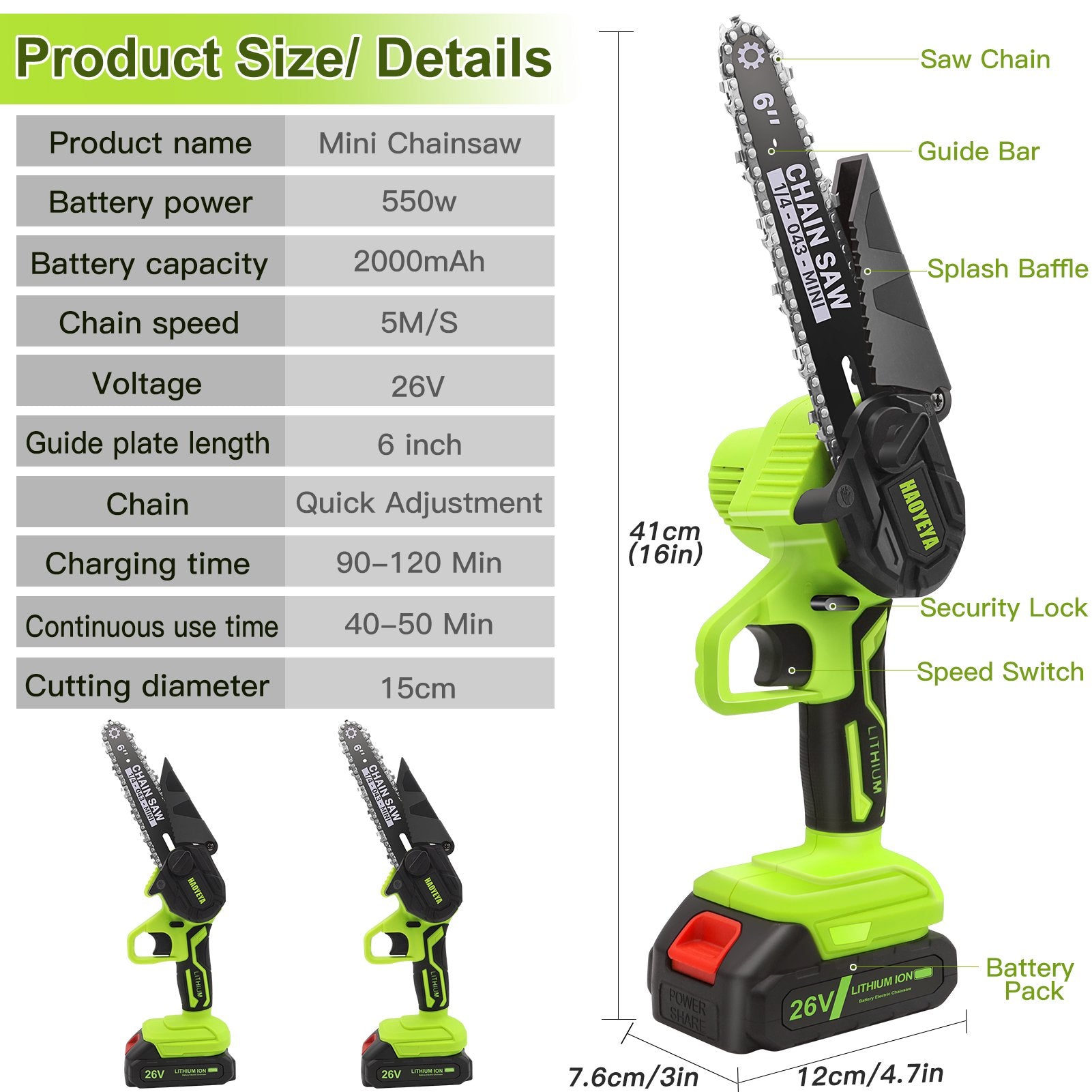 منشار TSJUN ببطارية ليثيوم أيون عالية الأداء ٢١ فولت يوفر طاقة فائقة دون أي فقدان للذاكرة بعد الشحن. سلسلة وقضيب فولاذيان متينان بطول ٦ بوصات، مع خاصية شد السلسلة بدون أدوات، يوفران سهولة الاستخدام مع أعلى أداء في القطع. تم تحسين الصمولة الأصلية على الغطاء إلى برغي بدون أدوات، مما يوفر وقت التركيب. مزود ببطاريتين، تعمل كل بطارية بشكل متواصل لمدة ٤٠-٥٠ دقيقة تقريبًا، مما يتيح لك إكمال إصلاحات حديقتك دفعة واحدة.