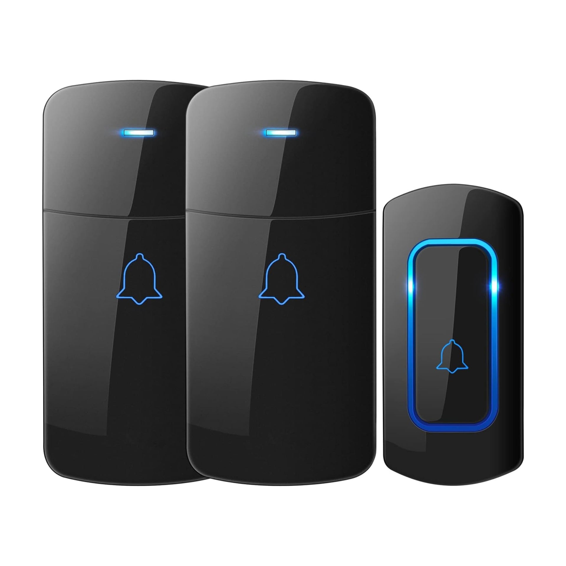 - طقم جرس باب لاسلكي، جرس باب يعمل على ارتفاع يزيد عن 1300 قدم، طقم جرس باب مقاوم للماء مع مستقبلين متصلين، مؤشرات LED، 52 نغمة، إعداد سهل للمنزل والمكتب