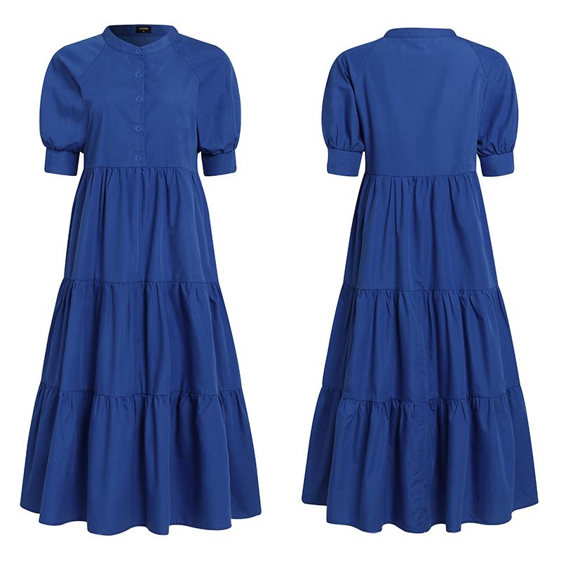 - فستان قميص بوهيمي صيفي للنساء من VONDA لعام 2022 (ملكي) كاجوال برقبة دائرية وأكمام نصفية وطويلة، فستان صيفي للحفلات على الشاطئ