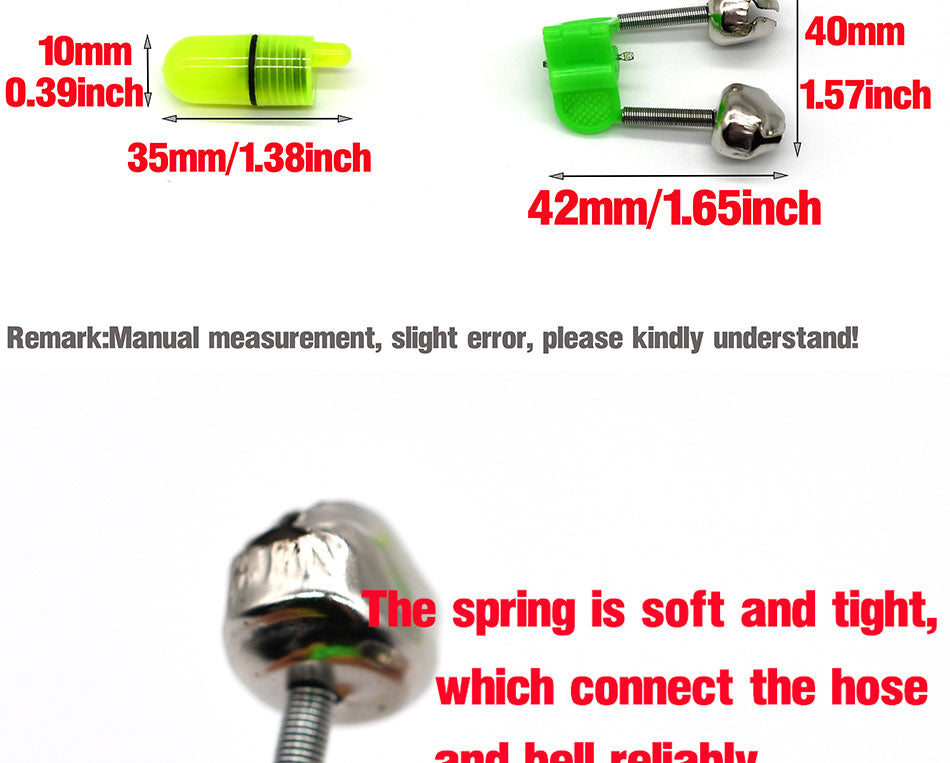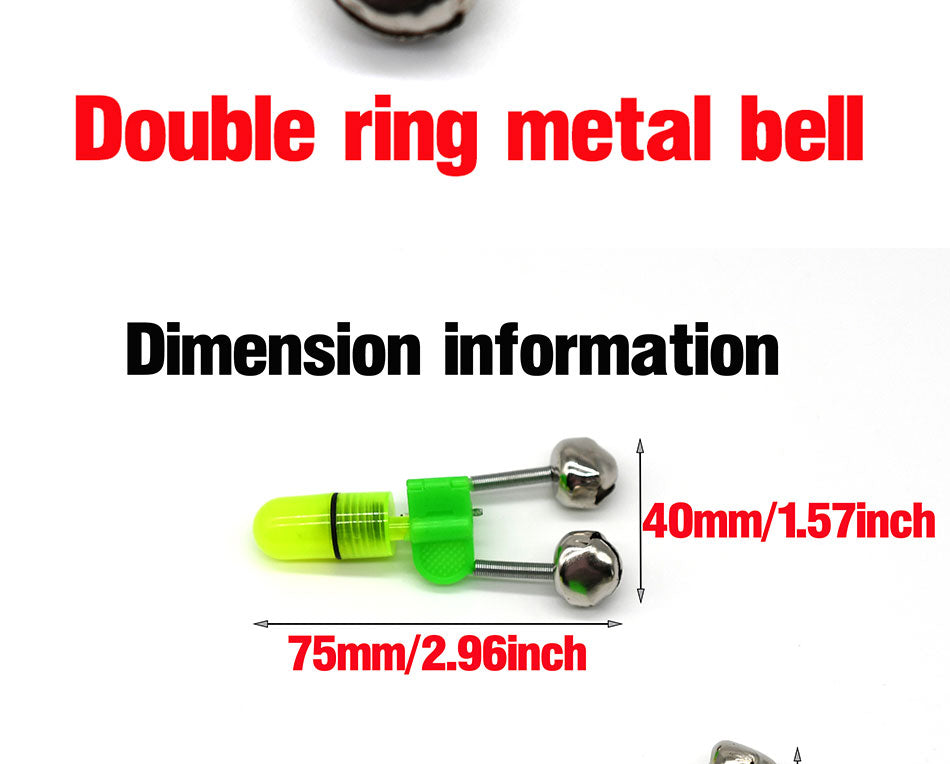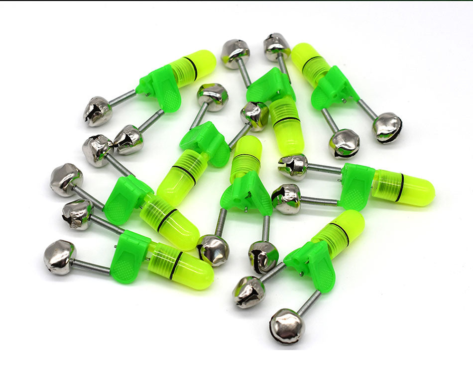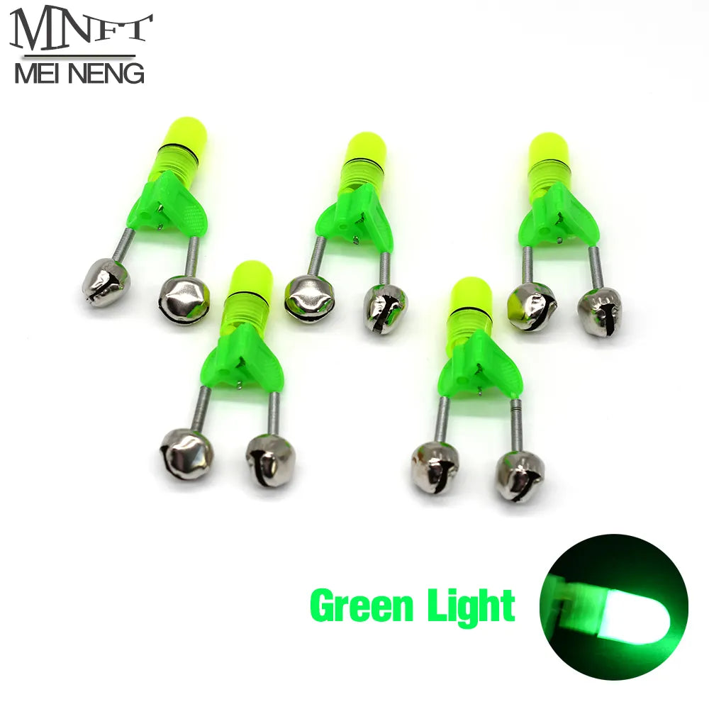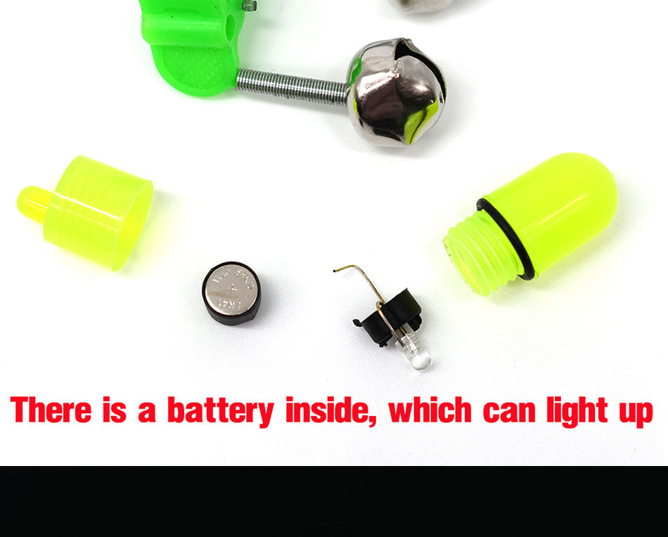 5 مجموعات من مصابيح LED لإنذار عض الطعم لقضيب الصيد الليلي مع جرسين دائريين لمؤشر إنذار عض الطعم على قضيب الصيد