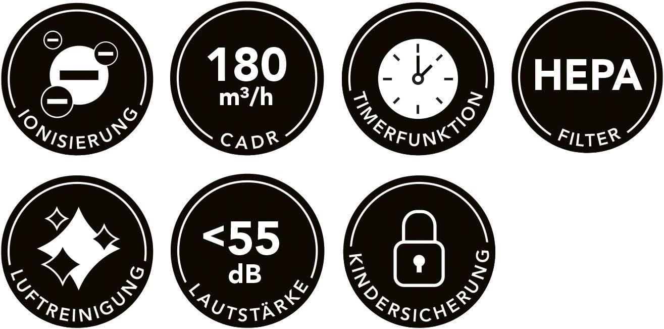 بفضل وظيفة التأين، يُمكن تنقية هواء الغرفة من جزيئات الأوساخ بكفاءة عالية. وبفضل الأشعة فوق البنفسجية والمحوّل الضوئي المُحفّز، لا يبقى لجزيئات الأوساخ أي فرصة للتكاثر.