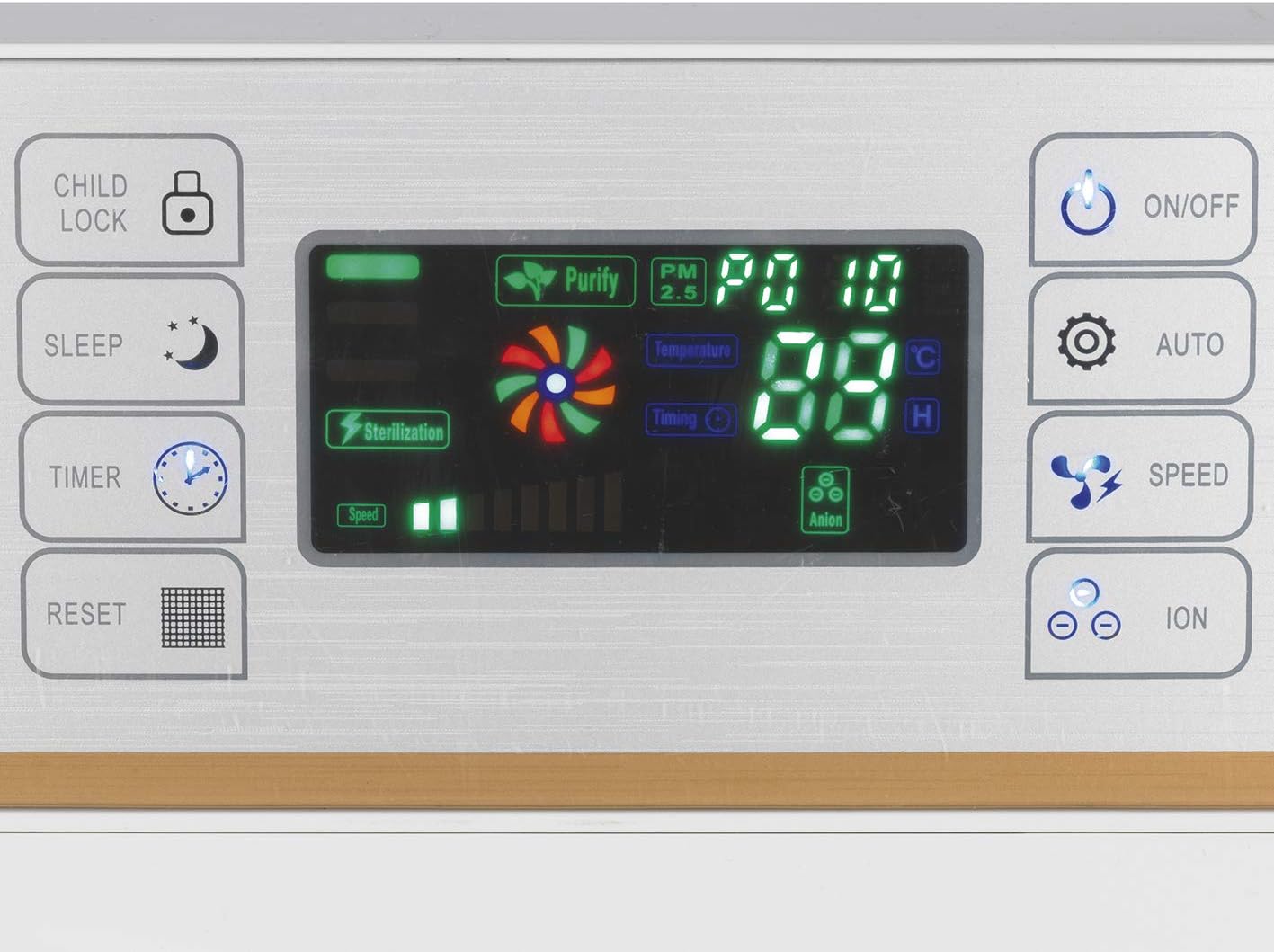 بفضل الشاشة الرقمية، أصبح التشغيل سهلاً للغاية. كما يتميز جهاز تنقية الهواء بوظيفة مؤقت لمدة 8 ساعات وقفل أمان للأطفال.