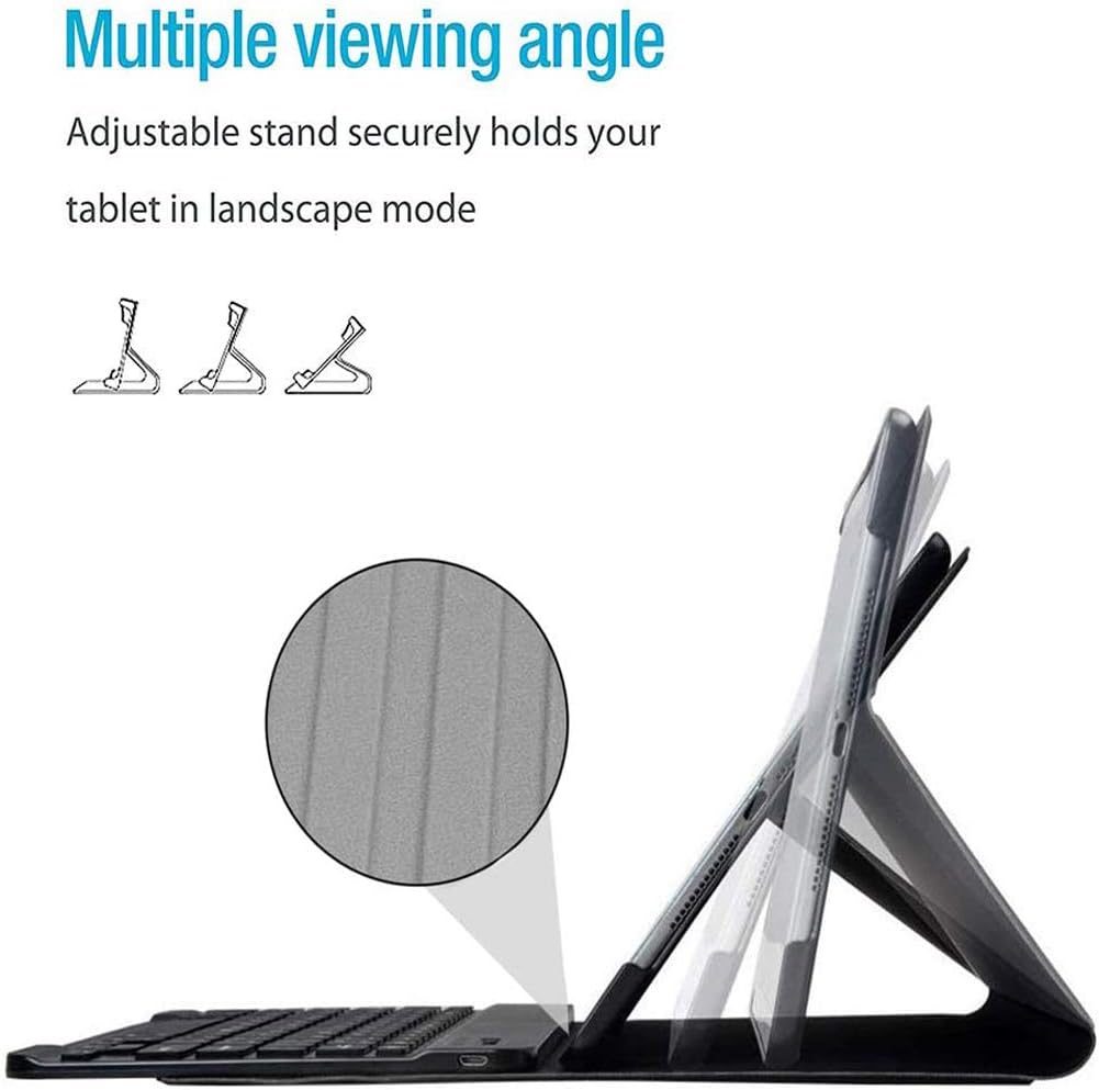 حافظة لوحة مفاتيح Upworld لجهاز iPad 10.2 بوصة الجيل الثامن (2020) / الجيل السابع (2019)، غطاء من البولي يوريثان خفيف الوزن للغاية مع حامل أمامي، مع لوحة مفاتيح لاسلكية قابلة للفصل مغناطيسيًا، أسود