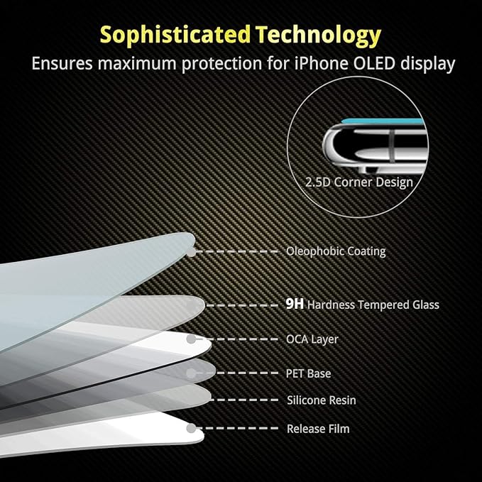 | Special features | [99% High Transparency] [Touch Sensitive] [Easy to install] [Automatically Bonding] [Scratch Resistant] [No Bubble] [Oil Free] [Anti-Fingerprint] [Face ID compatible] [Case-Friendly] |