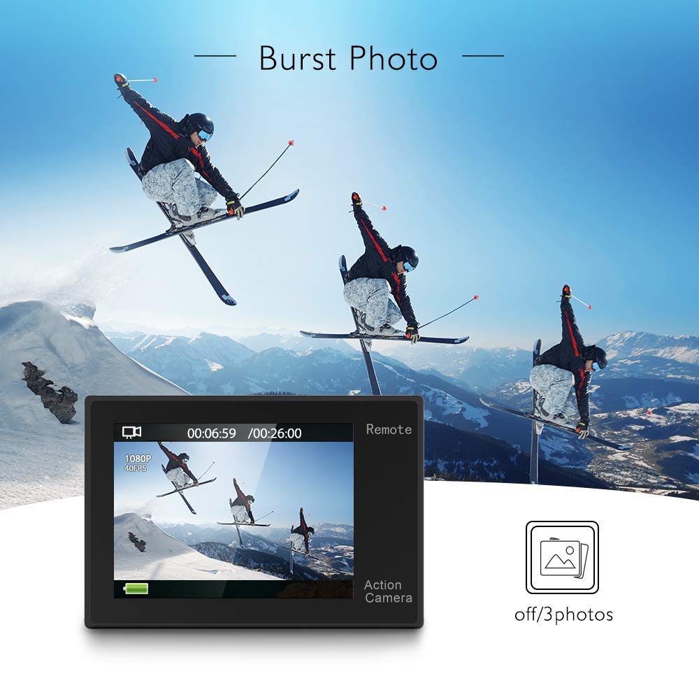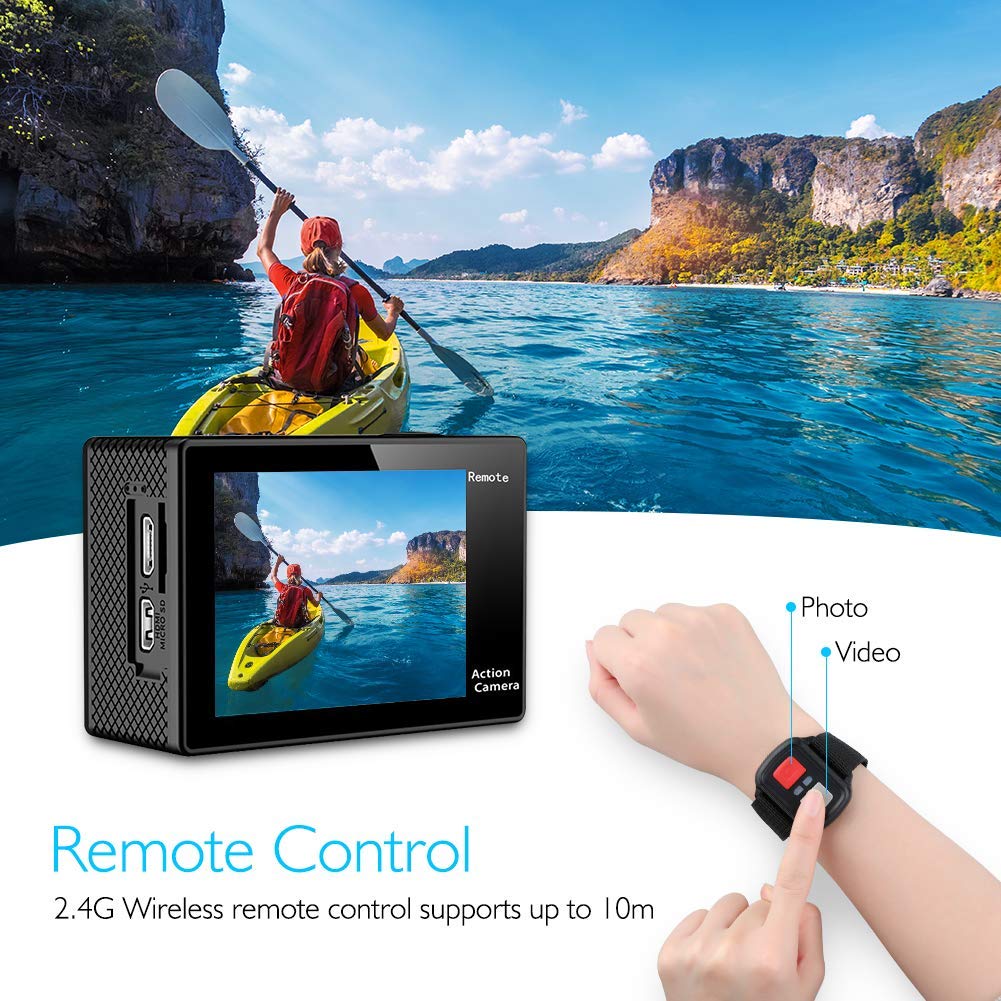 AKASO EK7000 4K WiFi Action Camera 30M Underwater Waterproof Camera 170° Wide Angle Sports Camera with 2 Batteries and Helmet Accessories Kit