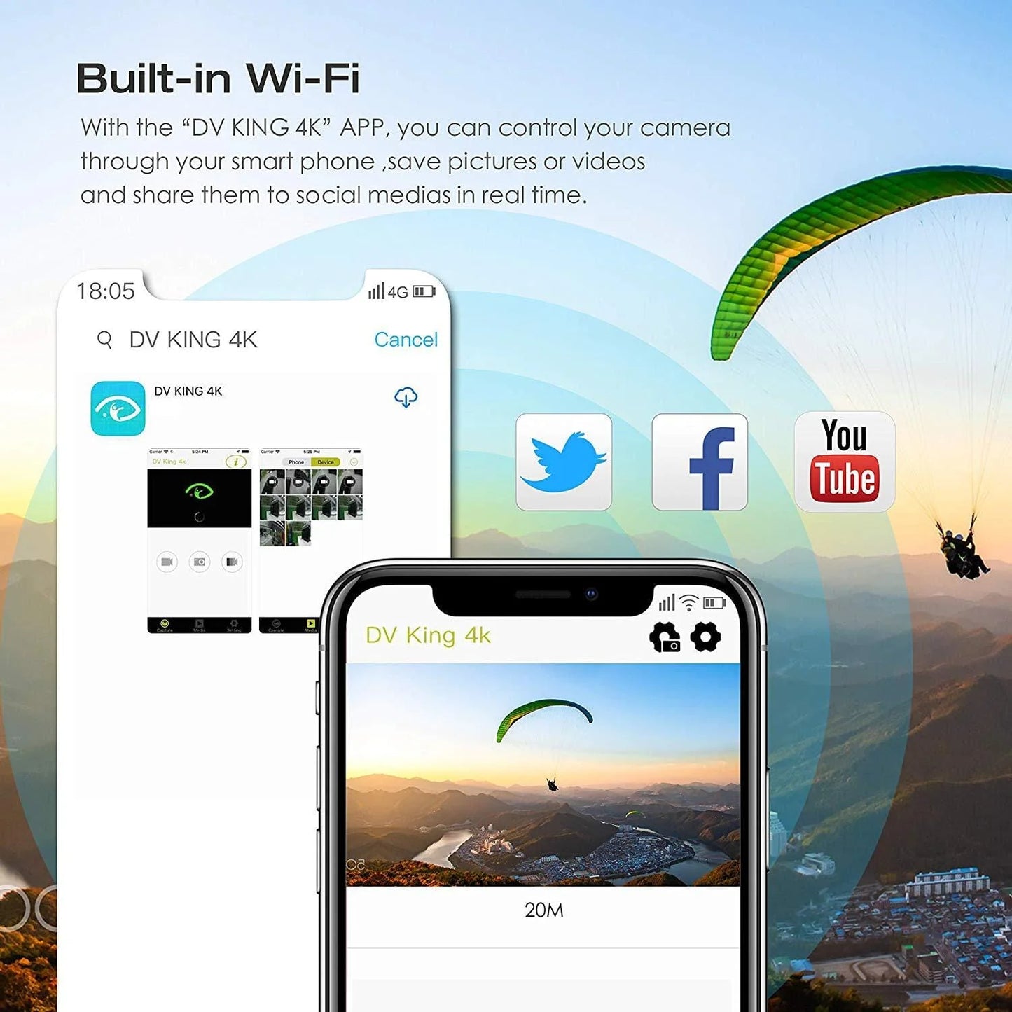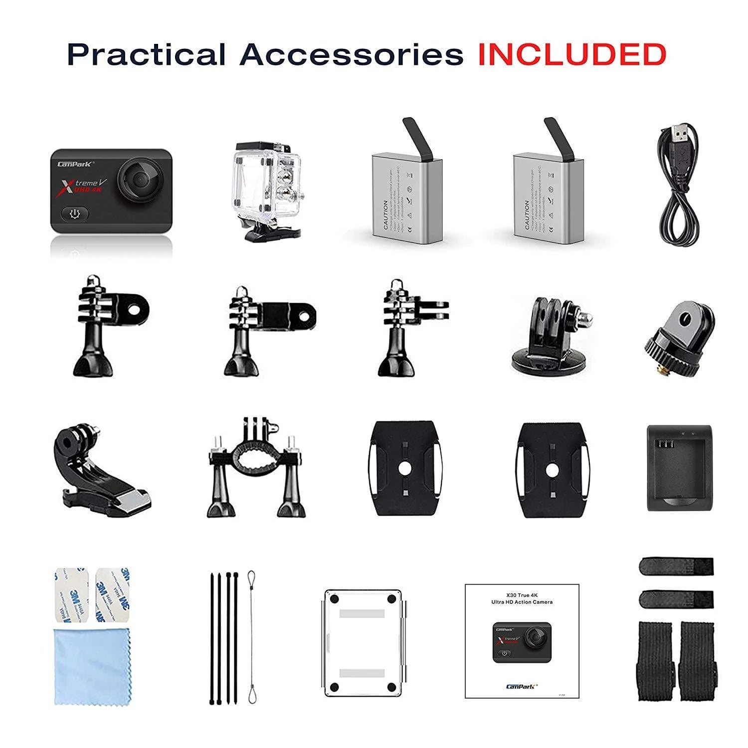 Campark X30 Action Camera Native 4K 60fps 20MP WiFi with EIS Touch Screen Waterproof Camera 40M, 2x1350mAh Batteries and Professional Accessories Compatible with gopro