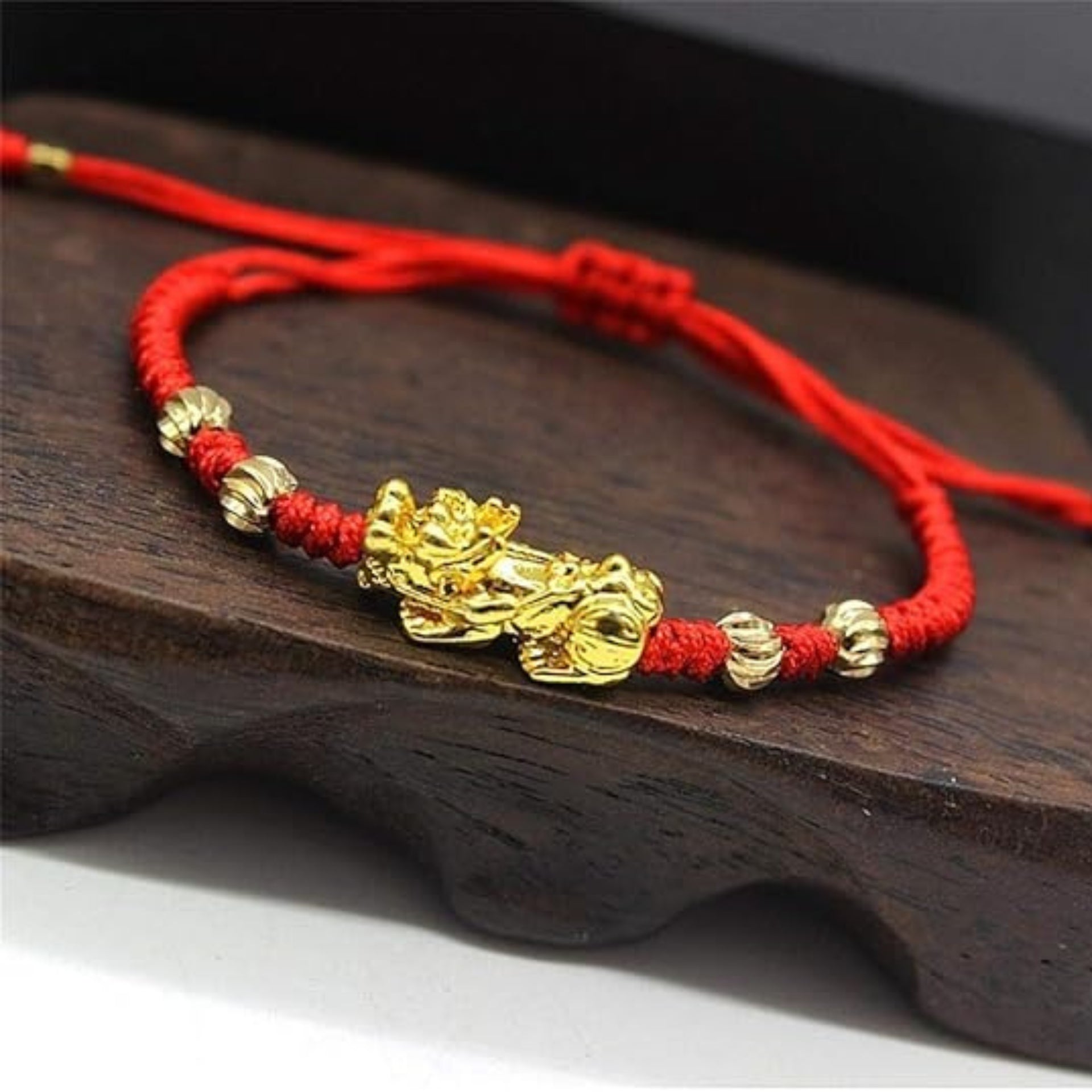1 Pcs Pi Xiu Red String Bracelet Chinese Feng Shui Pi Xiu Kabbalah Red Rope Bracelet Gold Bead Handmade Strand Charm Bracelets Amulet For Men Women Good Luck Wealth Evil Eye Protection