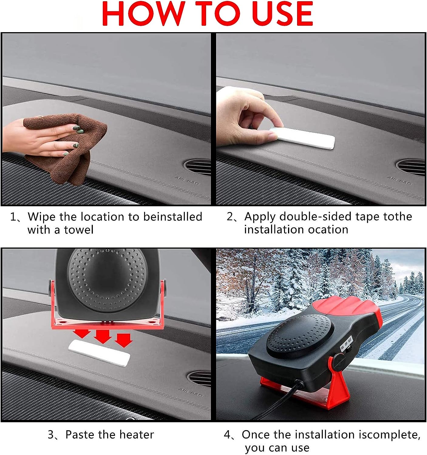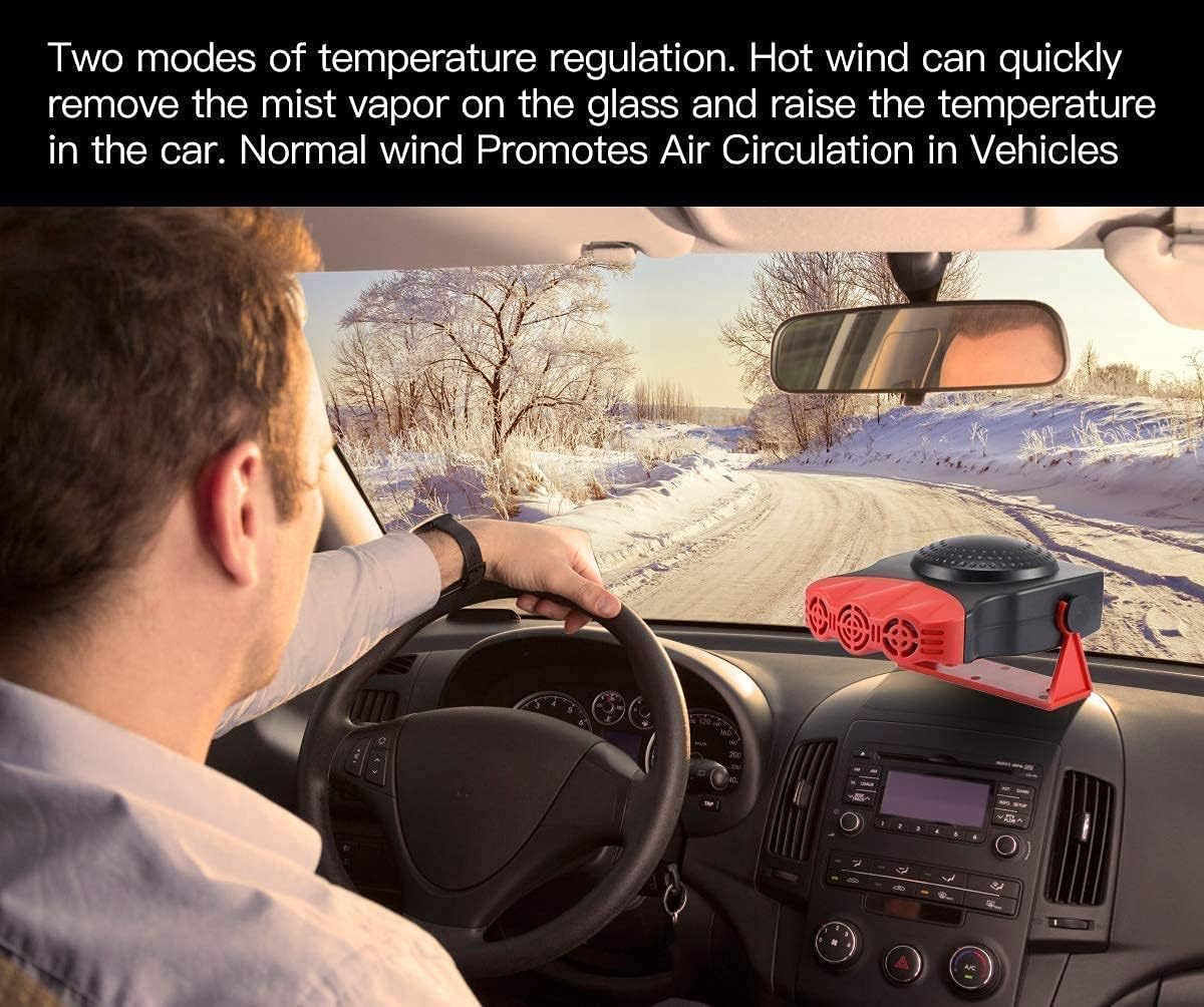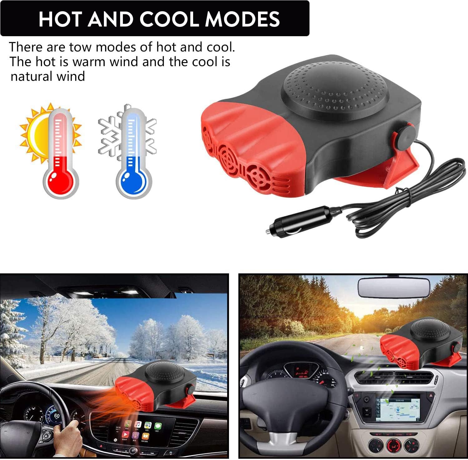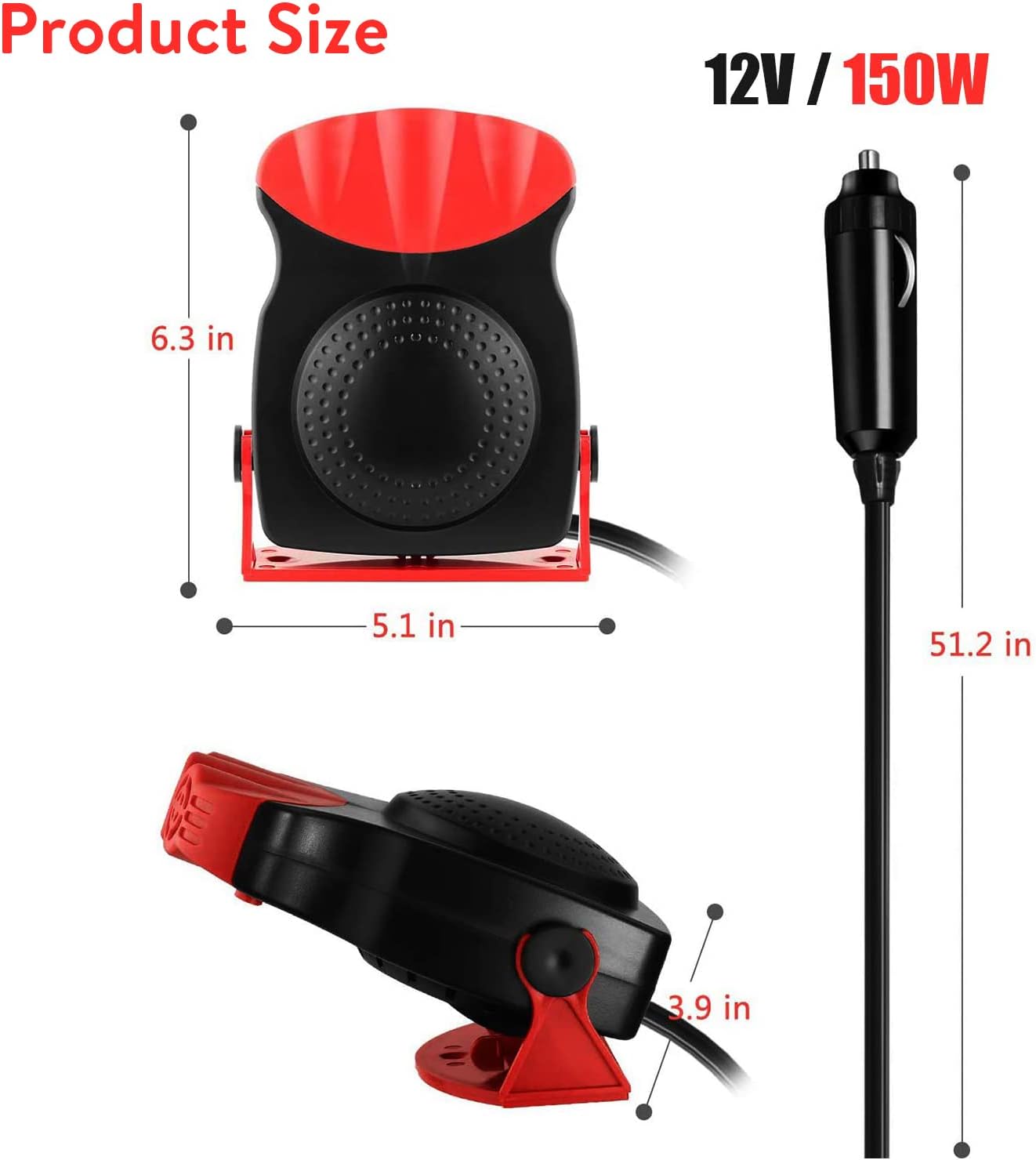 Showvigor Portable Car Heater Defogger Red, 2 in 1 Cooling & Heating Car Fan Vehicle Electronic Air Heater Defrost 12V 150W, 3-Outlet Fans, Automobile Windscreen Fan
