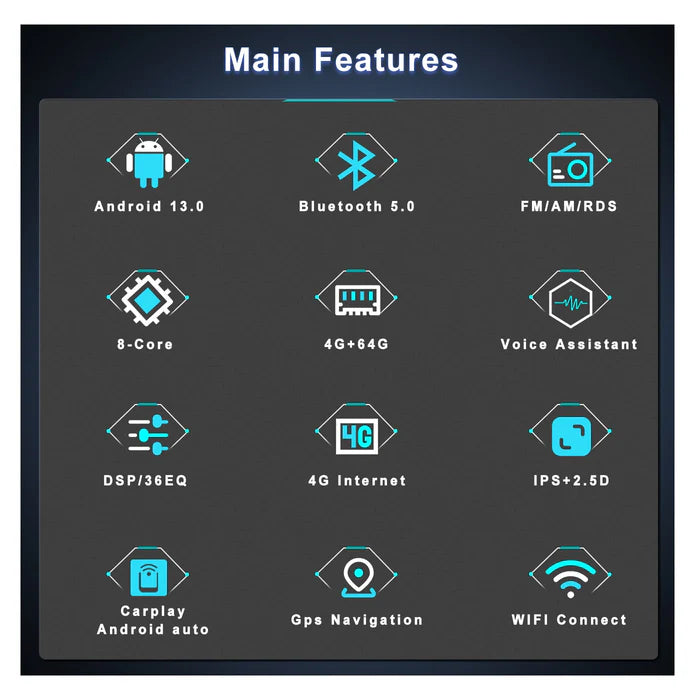 IPS 2.5D 9''Android 13 Car Radio Stereo, 8-core, 6+128GB, with Apple CarPlay & Android Auto&Mirror Link, Support Rear View Camera & Dash Cam Input&Steering Wheel Control