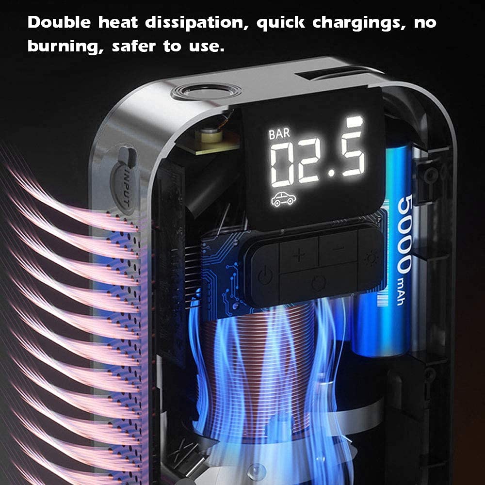 - USAMS Inflator Pump Car Air Compressor Digital Tire Pressure Detection 5000mAh Portable Auto Tire Pump for Car Bike Motorcycle