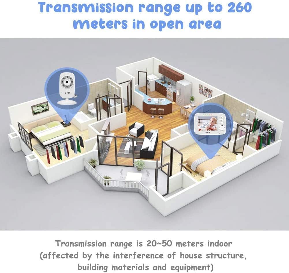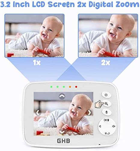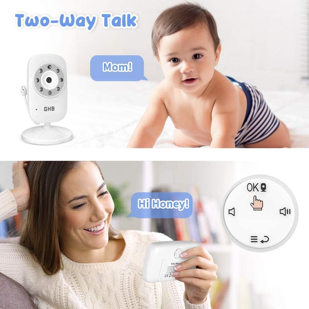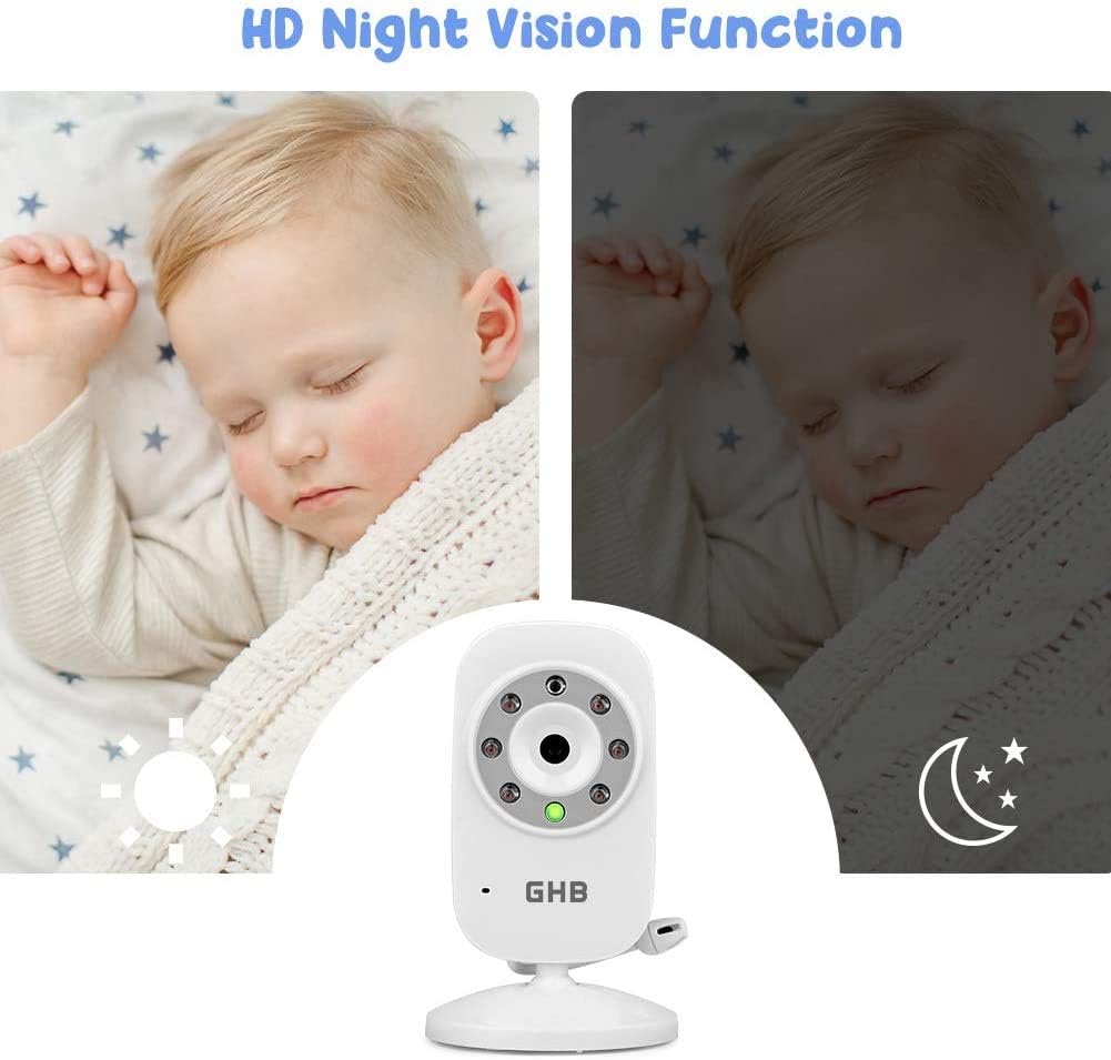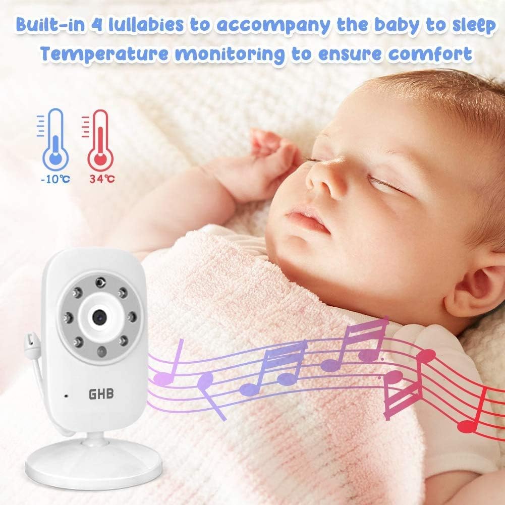 GHB Baby Monitor Video Baby Monitor with Camera Digital Zoom Infrared Night Vision Temperature Monitoring Lullaby Two-Way Talk Support Multi Cameras
