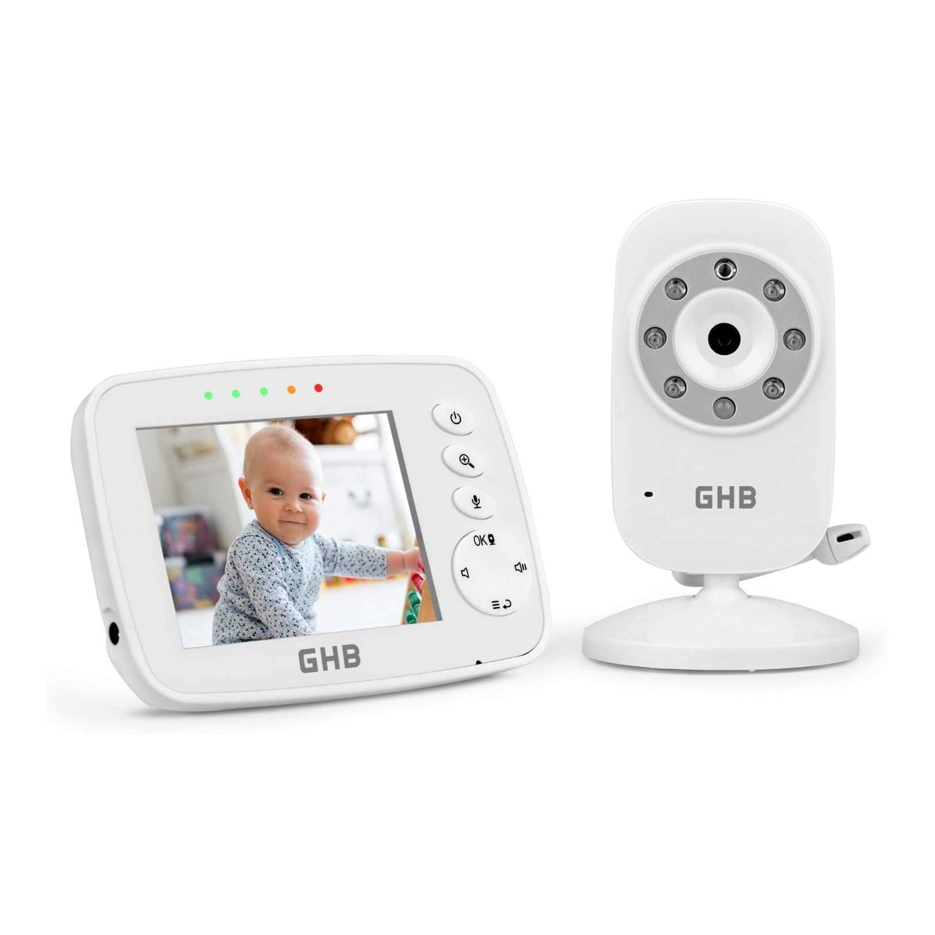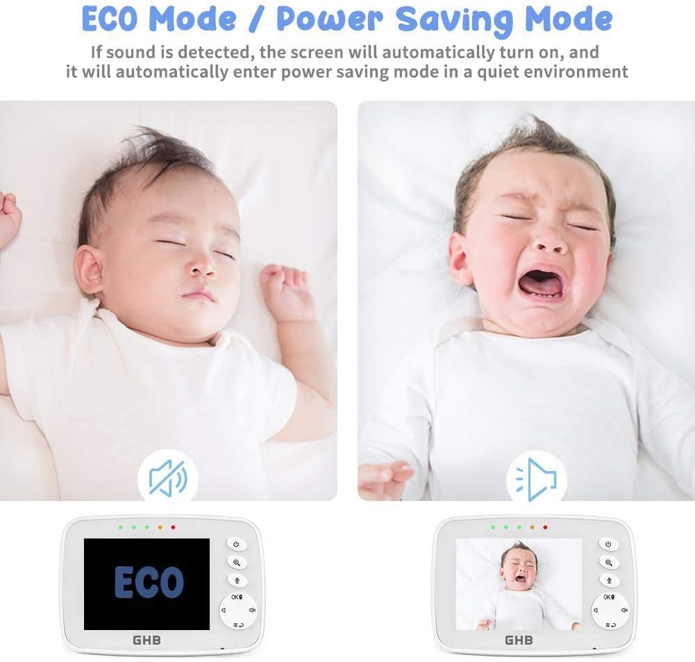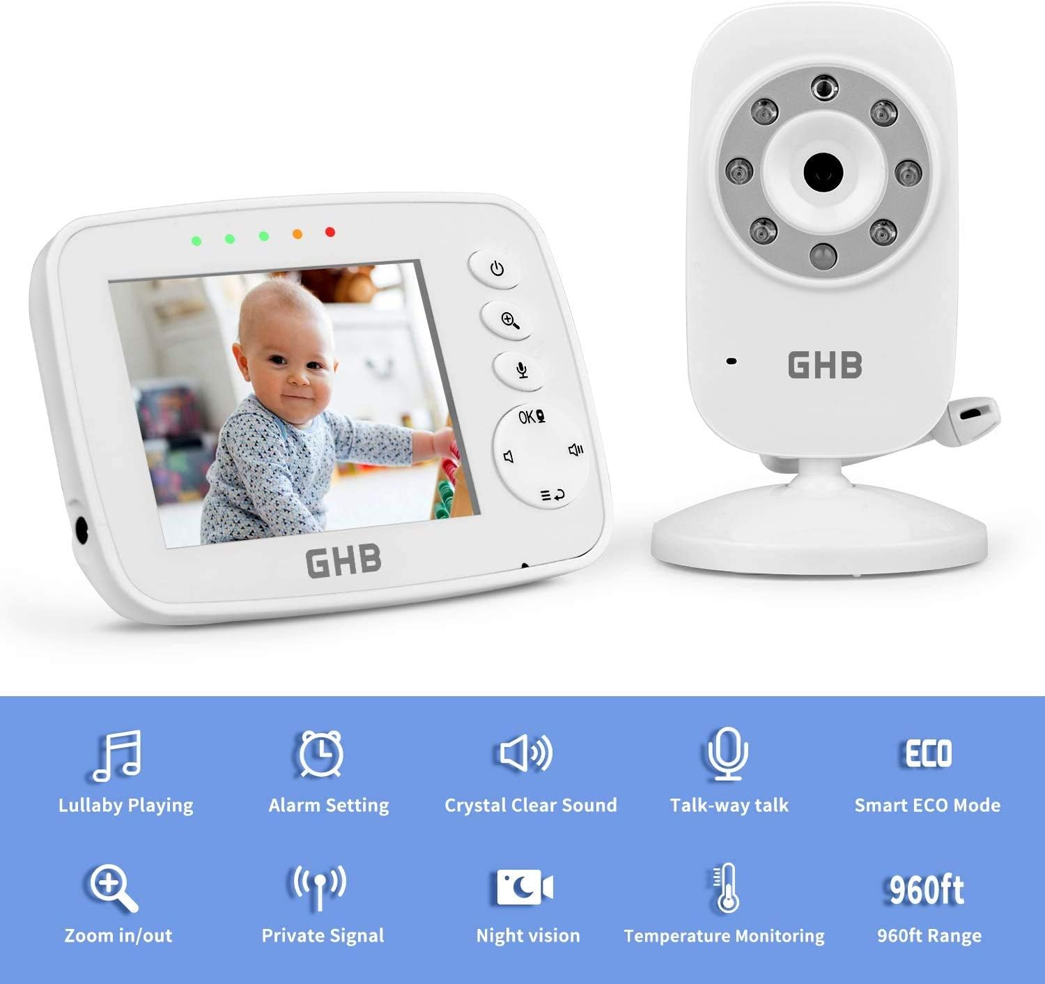 GHB Baby Monitor Video Baby Monitor with Camera Digital Zoom Infrared Night Vision Temperature Monitoring Lullaby Two-Way Talk Support Multi Cameras