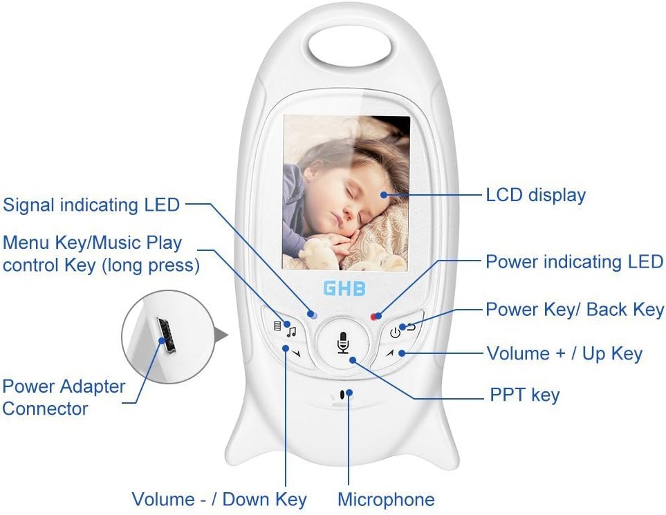 GHB Baby Monitor Video Baby Monitor with Camera Wireless Baby Monitor 2.0" LCD Display Baby Lullaby Night Vision Temperature Monitoring 2 Way Talk