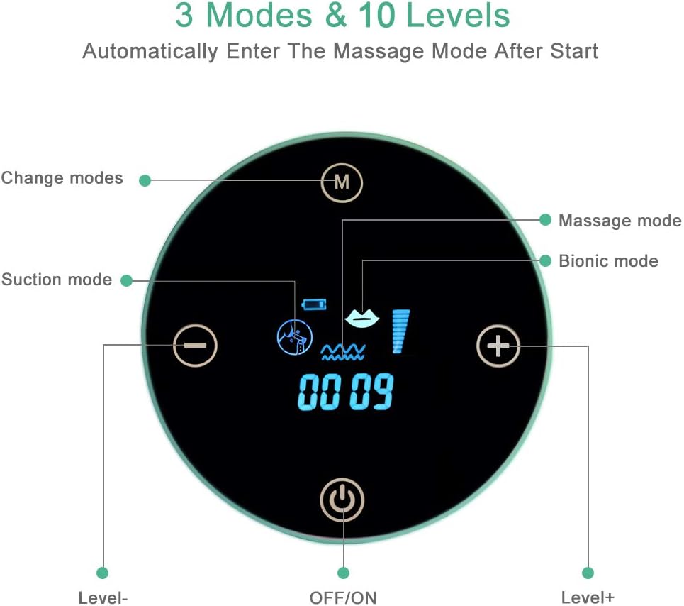Each mode has 9 adjustable suction gears. Mothers can use these to adjust the suction action to meet their own needs.
