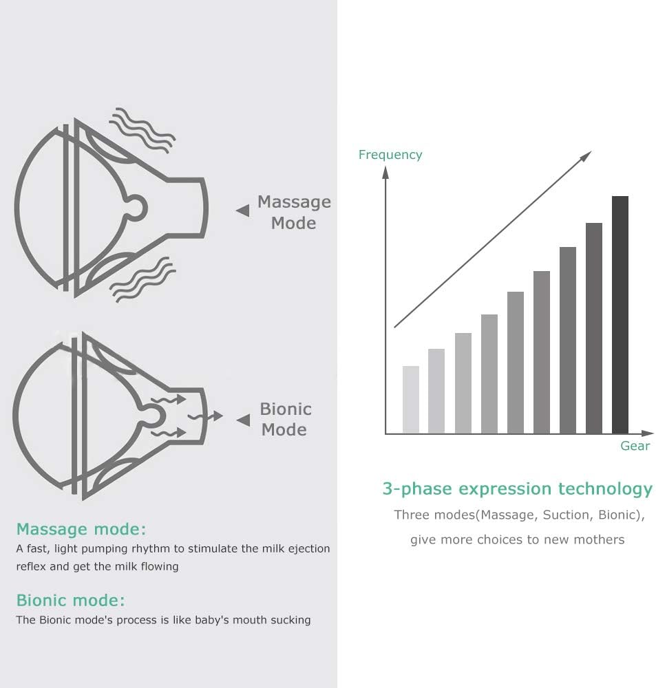 - 【High Efficiency & Easy to Use】Turn on the electric breast pump and automatically start a gentle pacing mode to stimulate milk flow. It pumps more milk in less time thanks to its 3-phase expression technology.Emovable parts are dishwasher safe.