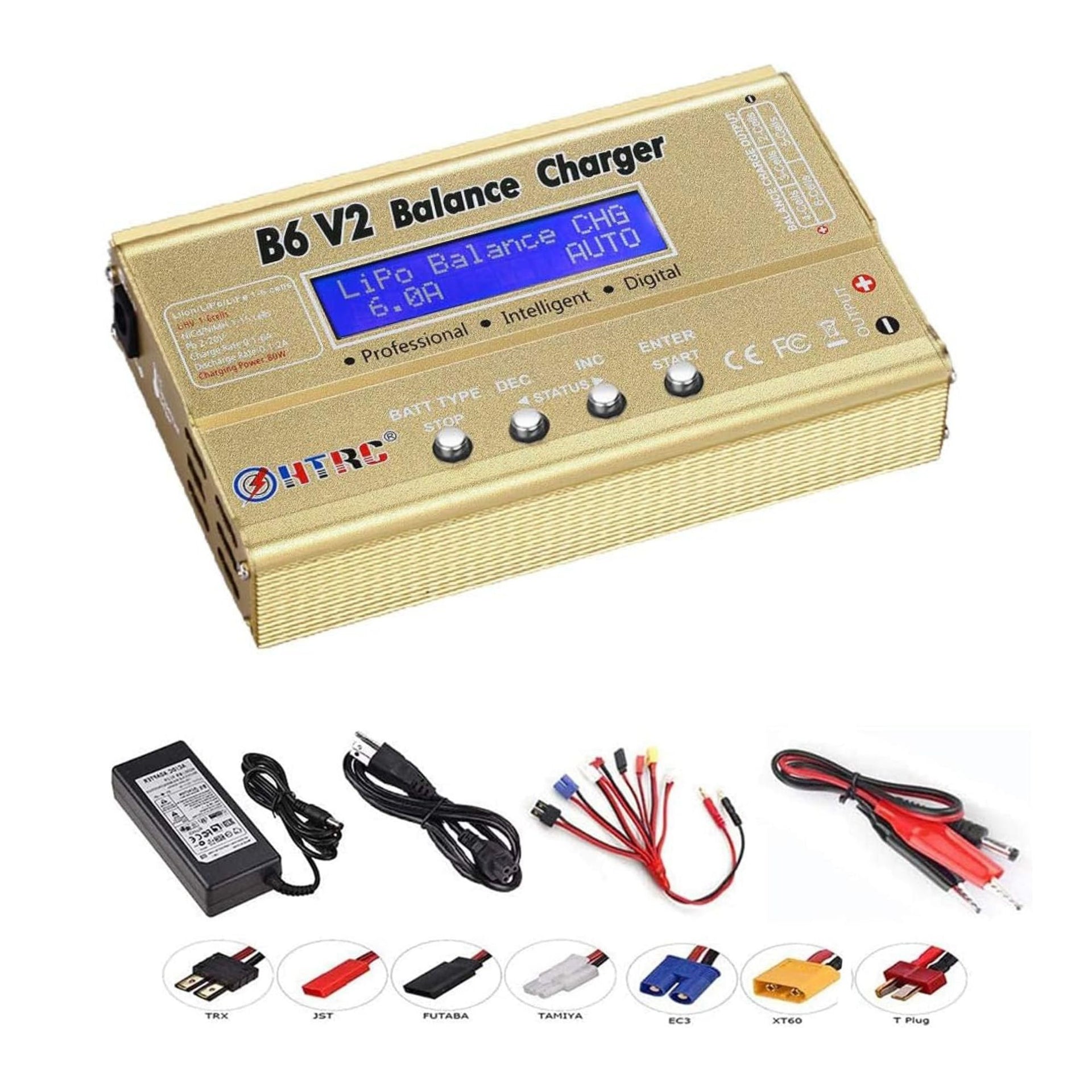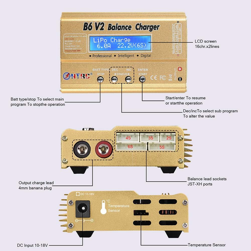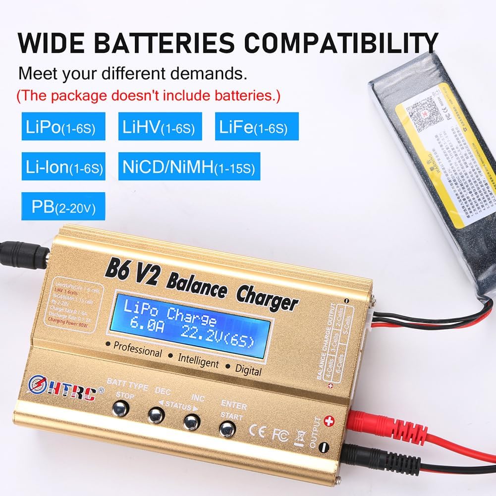 - HTRC B6V2 80W LiPo Battery Charger Balance Fast Charger Discharger Digital Battery Pack Charger for 1S-6S LiPo/LiHV/Life/Li-ion 1S-15S NiCD NiMH 2-20V PB Smart Battery RC Car