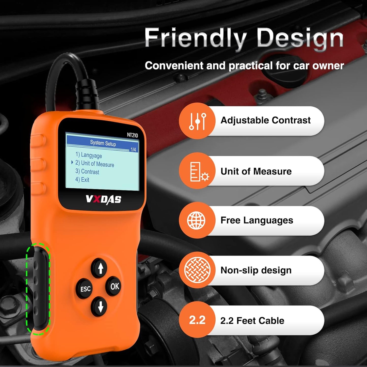 VXDAS OBD2 Scanner, NT210 Enhanced OBD II Auto Code Reader Check Engine Light CAN Car Diagnostic Scan Tool 2023