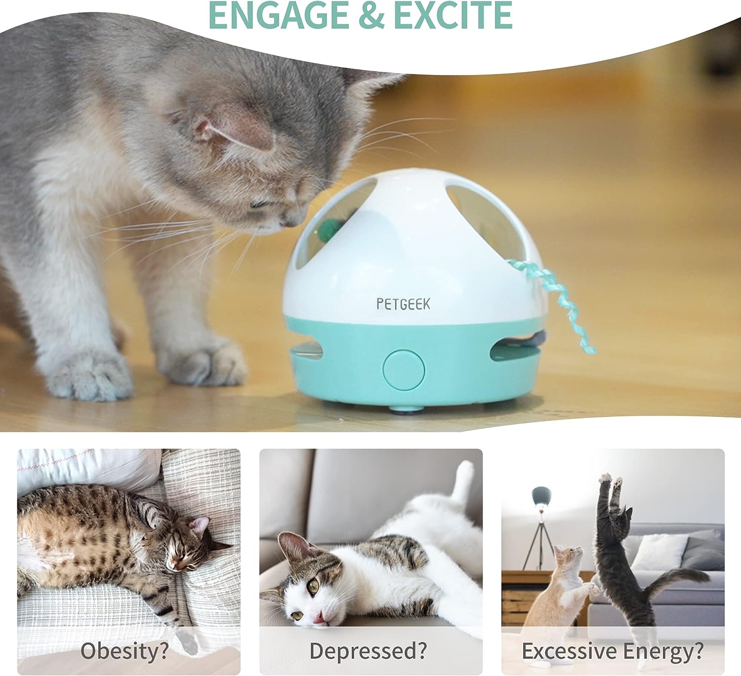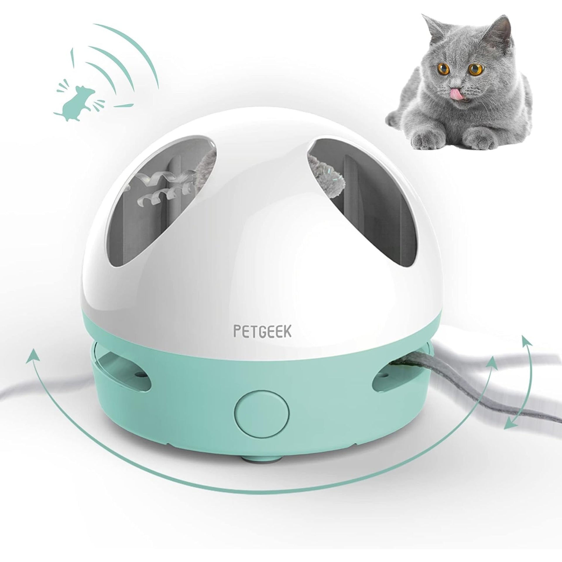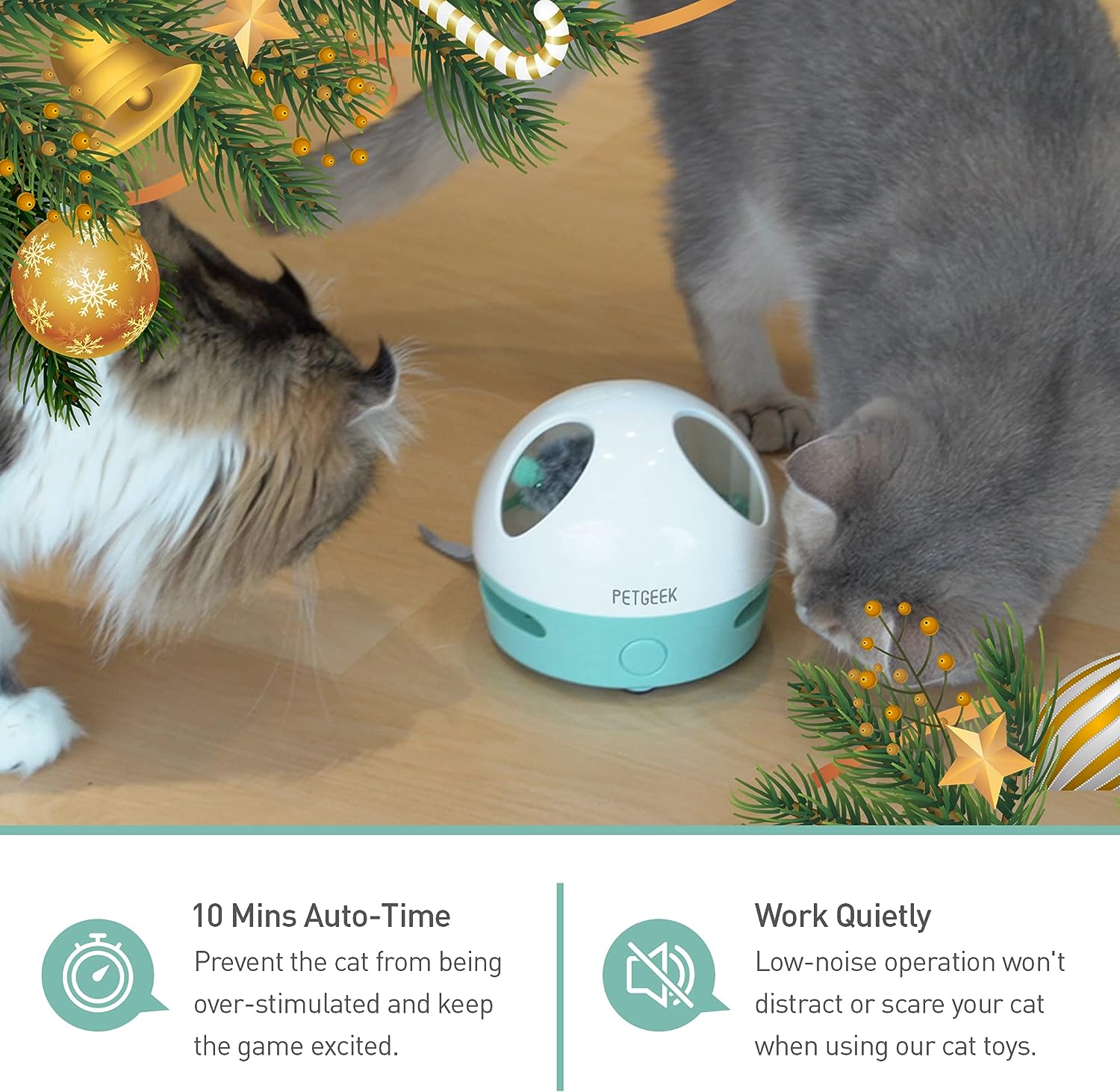 About PETGEEKLove pet, live smart. PETGEEK is a high tech and caring pet brand. With this vision, we gathered a group of experts who have geek spirit and also care a lot about their pets. And we set out a mission dedicated to offering a smarter and happier lifestyle for our pets, to exploring the new possibilities for pets. PETGEEK production process pursues the world standards and have passed ISO9001 Quality System Certification.PETGEEK Electronic Hiding Mouse Cat Toy- C97015CSize: 5.2 inches in length, 4.5 inches in heightMaterial: TPR/PlushWeight: 200g (0.44 lb)Battery Type: 2 AA batteries (not included)Working Voltage (V): 3Wattage(W): 0.75-1.2Notes:The device is specially designed for pets. This is not a child’s toy. Please keep out of reach of children except under adult supervision. Please use in a clean and safe environment and keep it away from water, fire, high temperature and dirty place.Not washable. Please wipe clean with a moist cloth if it is stained.Check the device regularly, and replace the toy if damaged.Do not mix old and new batteries or batteries of different brands. Do not mix alkaline, standard, or rechargeable batteries. Only use batteries of same or equivalent type as recommended. Do not use rechargeable batteries.Please remove the batteries if you won’t use the device for some time.