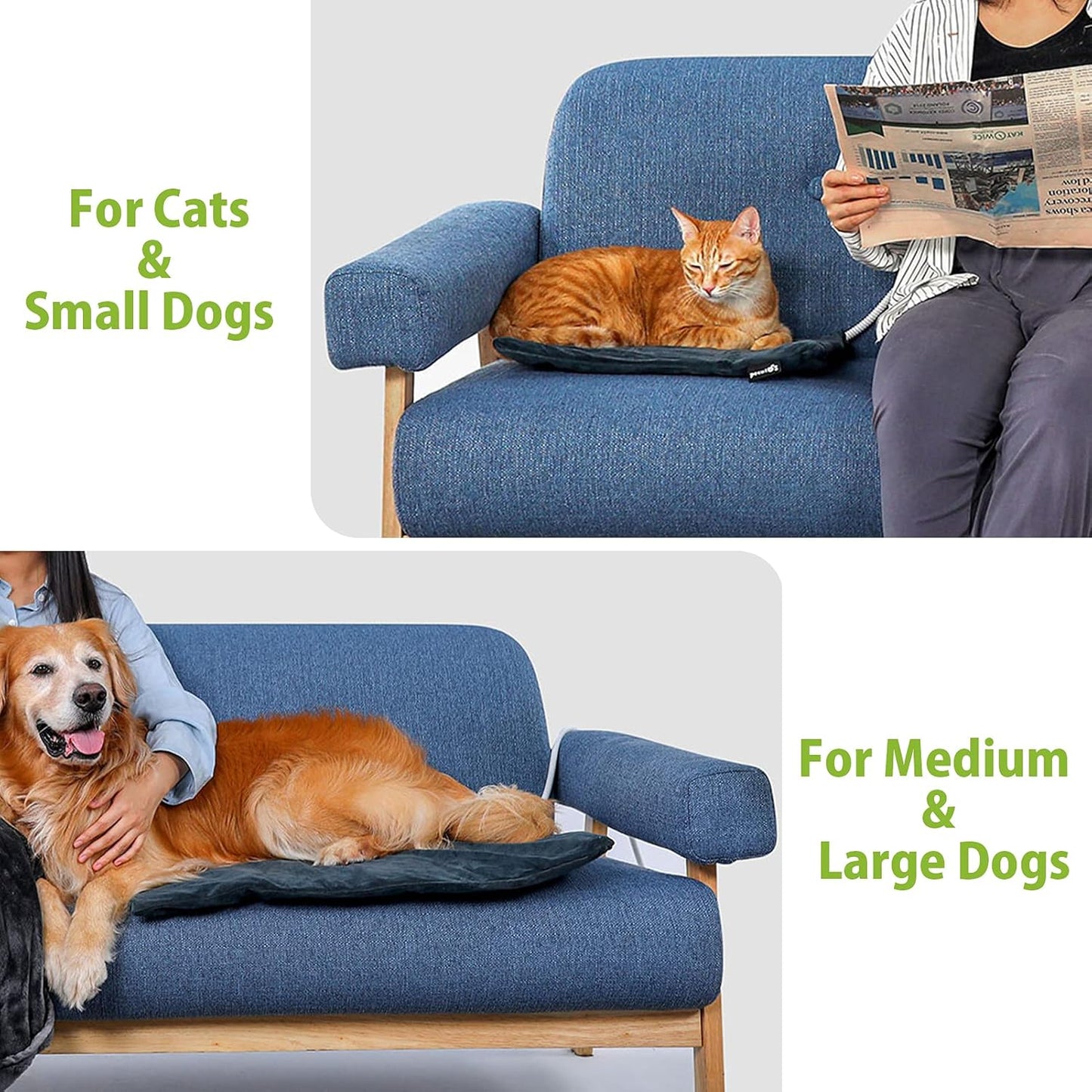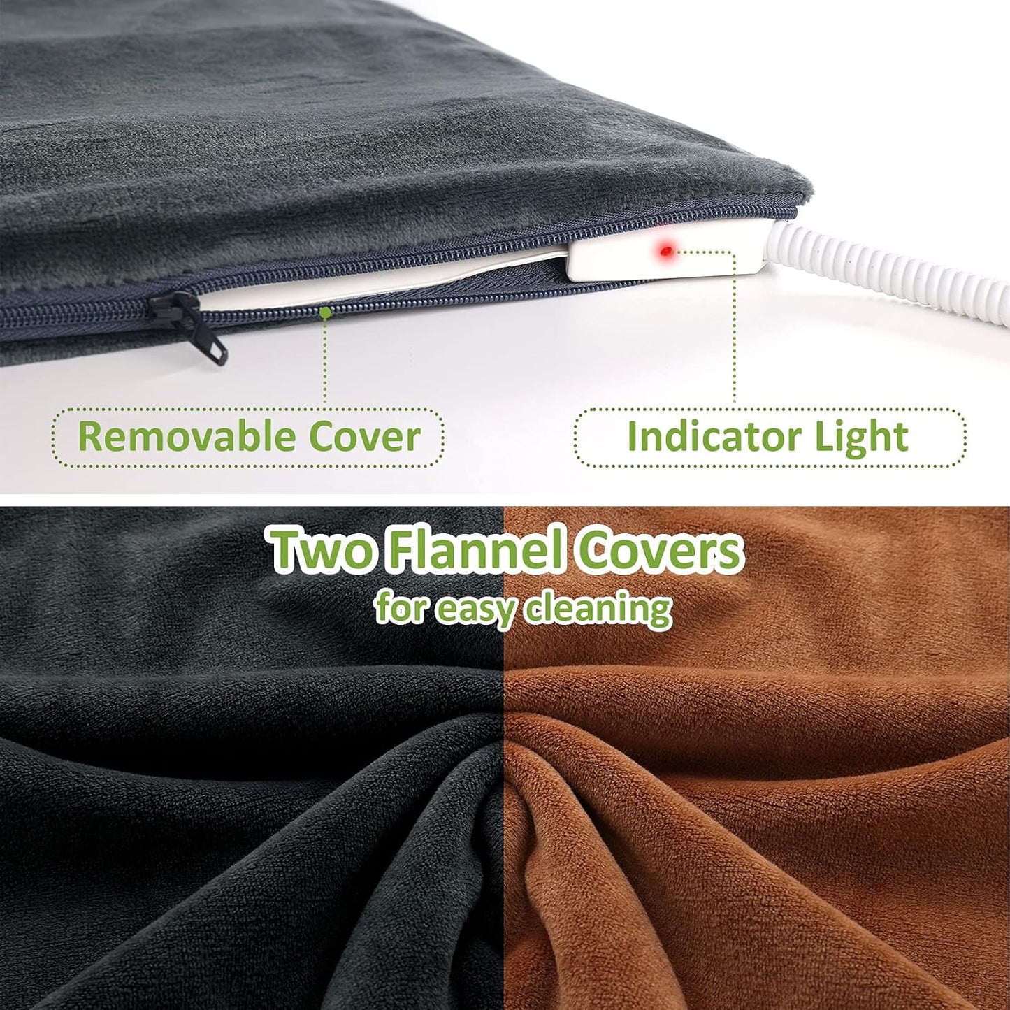 pecute Pet Heat Pad Small 32x40cm, Constant Heating Safe Electric Heated Mat Anti Bite Waterproof with Removable Flannel Cover & Fire Retardant Cotton, Soft Cosy for Puppies Kittens(2 Covers)