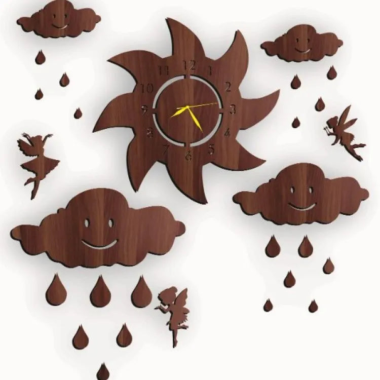 - Shape: Fairy Wooden Wall Clock with Clouds & Rain Drops & Sun