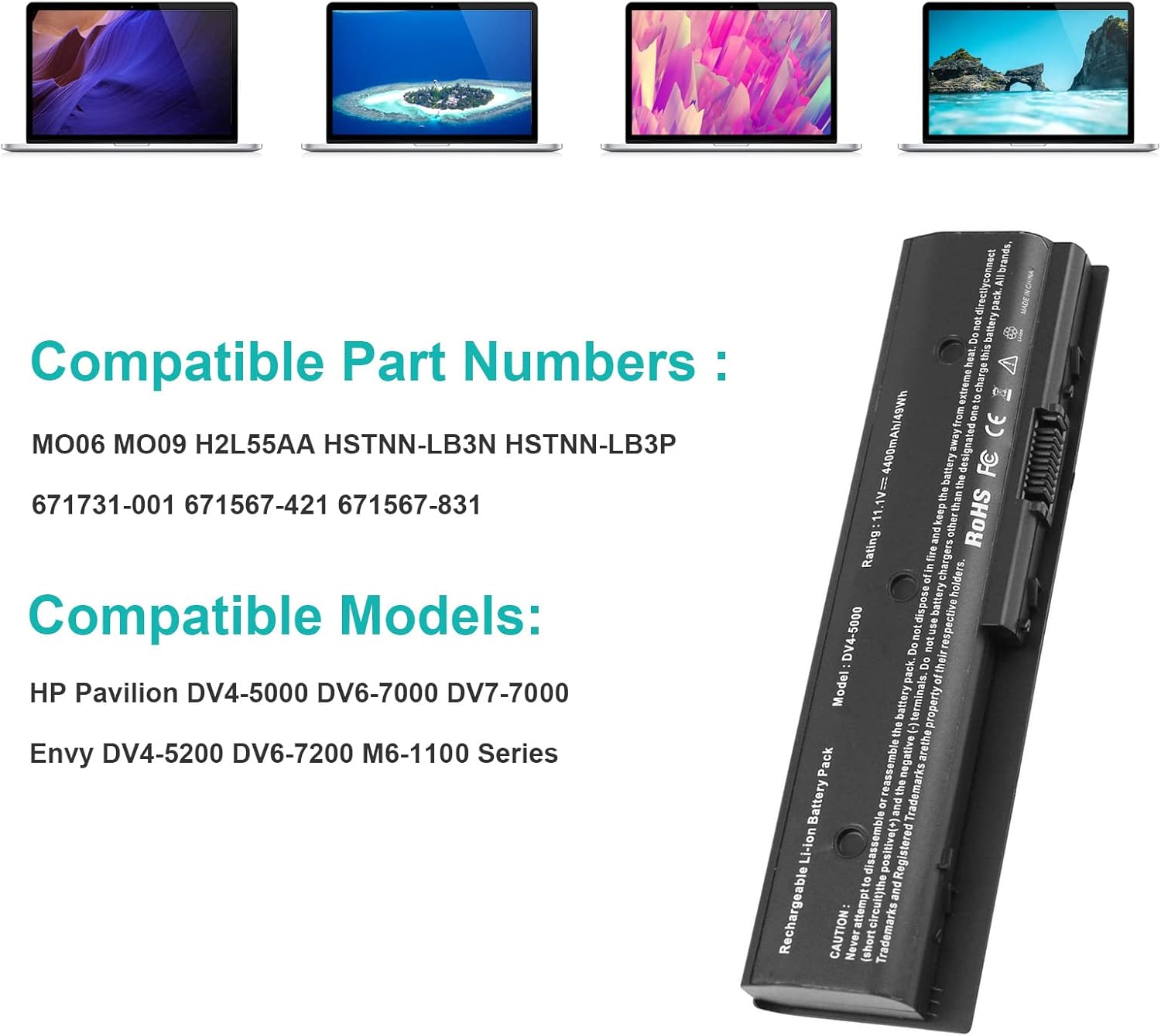 - DV4-5000 MO06 MO09 671731-001 Laptop Battery for HP Pavilion DV4-5000 DV6-7000 DV7-7000 Envy DV4-5200 DV6-7200 M6-1100 Series [11.1V/49Wh/4400mAh]