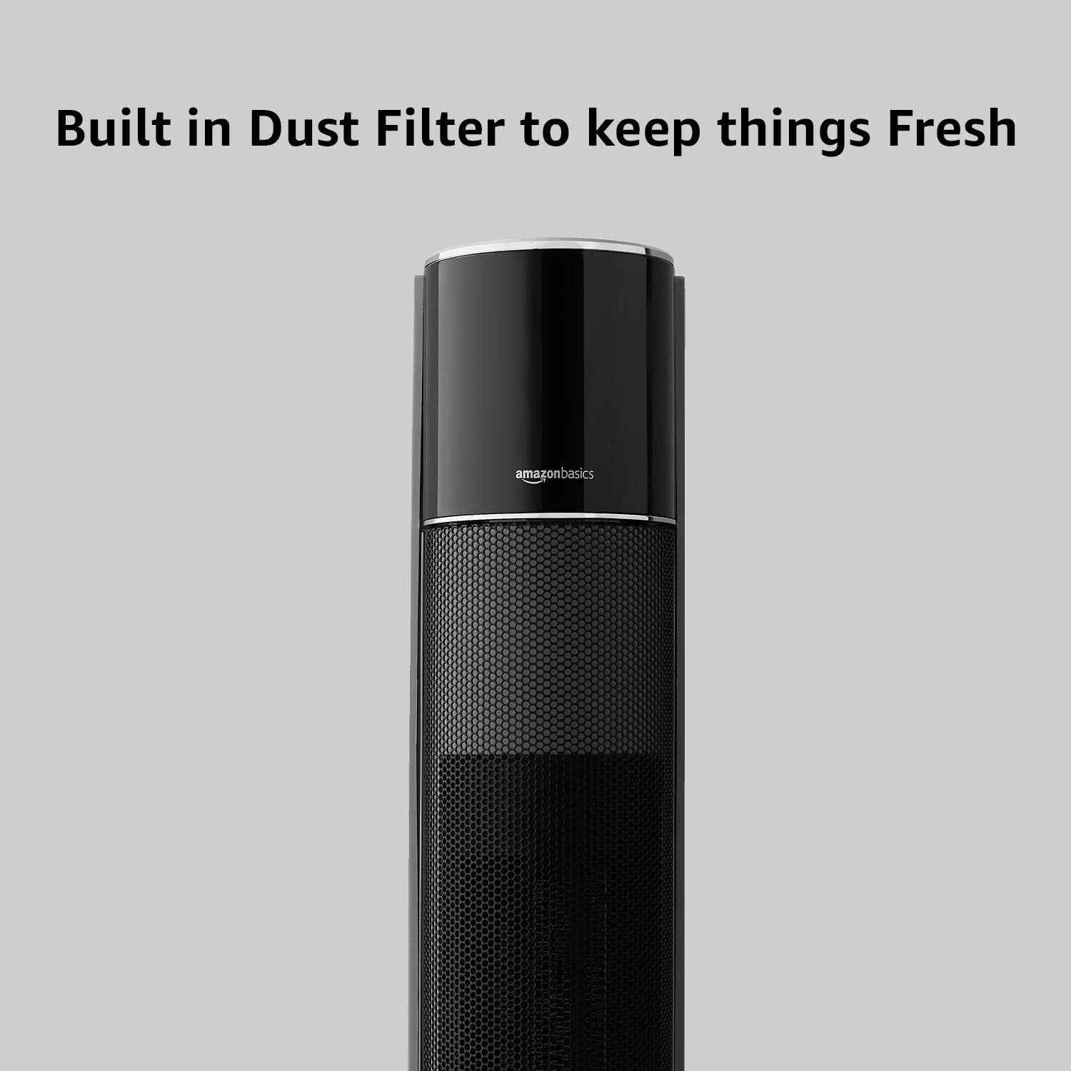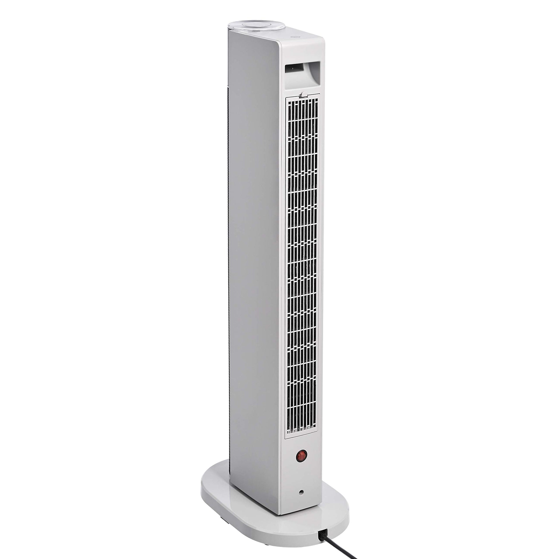 Amazon Basics ECO Oscillating Portable Tower Heater, 2 Fan Speeds, 3 Heat Settings, Timer and Remote Control, with UK plug, 2200W, White