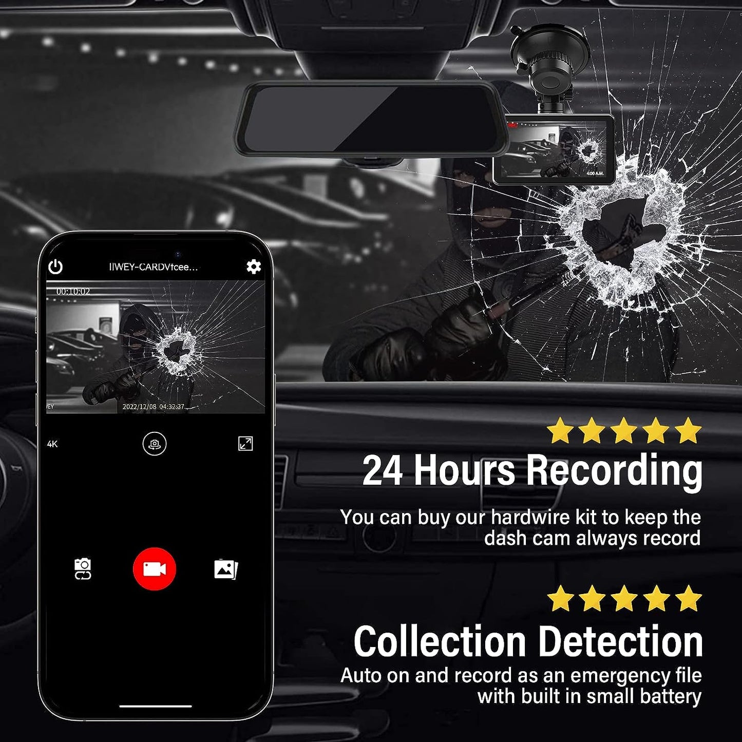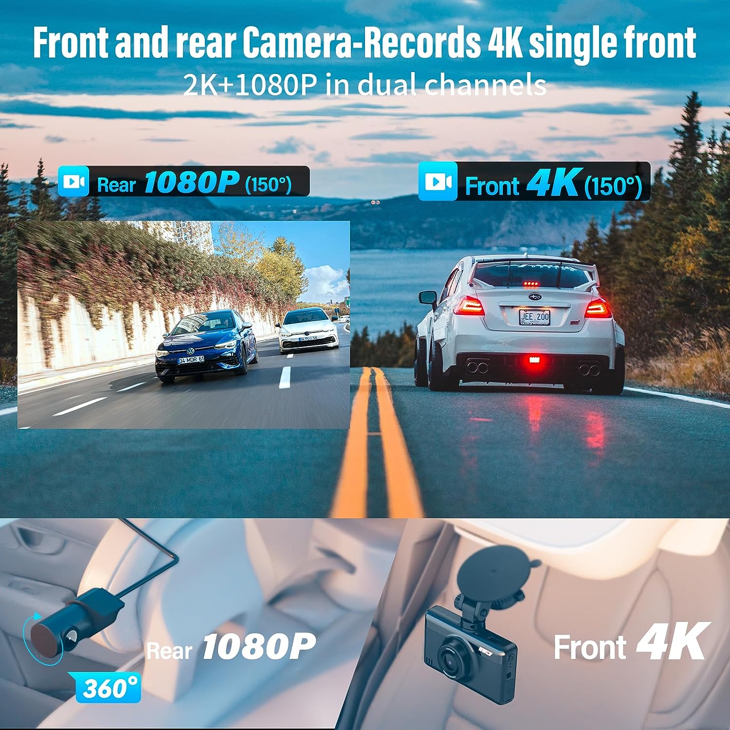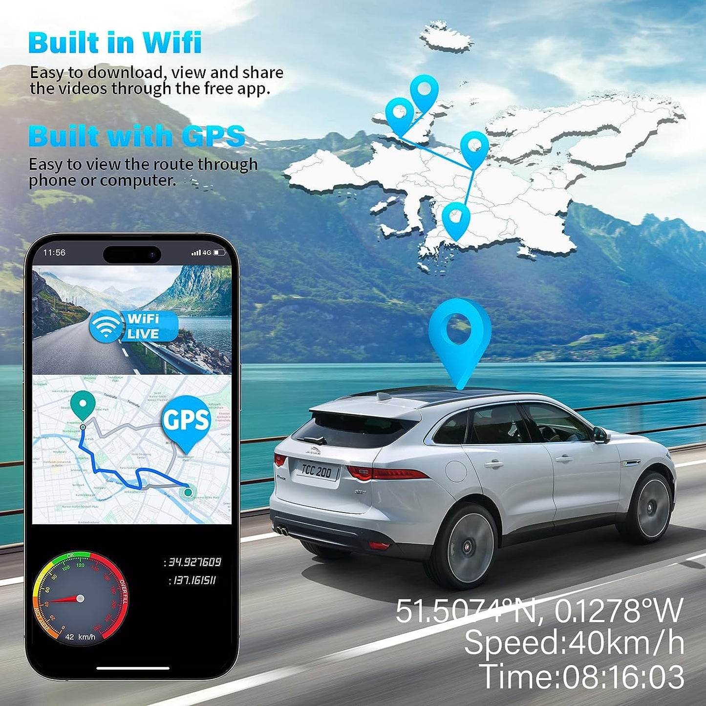 iiwey S1 4K Dash Cam Front Rear with WiFi GPS, Upgraded Front 4K Rear 1080P or Single Front 4K 2160p@30fps Car Camera, 3” Touchscreen Dashboard Camera, Sony Night Vision, Parking Monitor, App Control