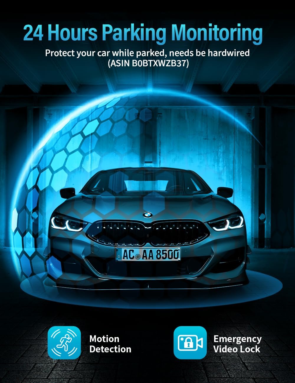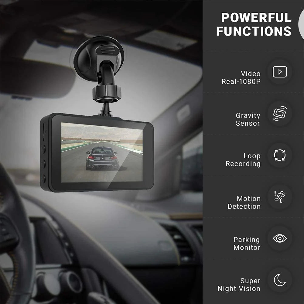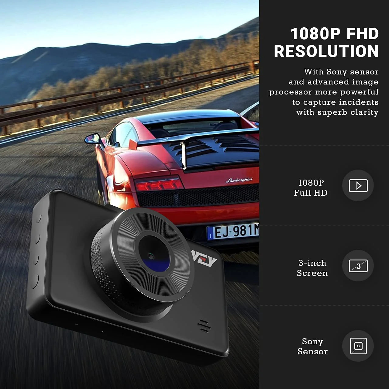 IIWEY DC01 Dash Cam Front and Rear Camera FHD 1080P with Night Vision SD Card Included, 3 Inch IPS Screen Dash Cam for Car, 170° Wide Angle Dashboard Camera Motion Detection Parking Monitor G-Sensor