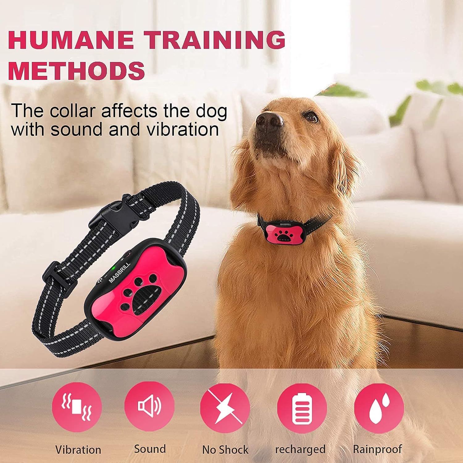 MASBRILL Dog Bark Collar, Bark Collar for Medium Dogs Rechargeable Anti Barking Collar No Bark Collars for Dogs Humane No Shock Barking Collar Vibration Beep No Barking Collar (Pink)