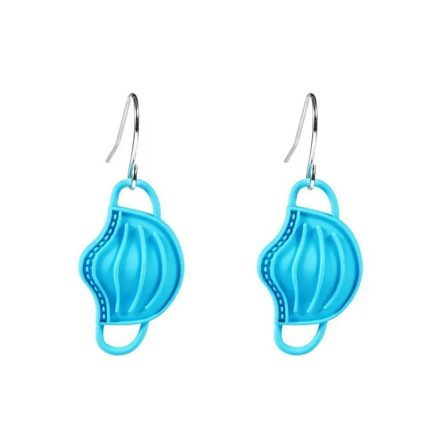 Trayknick Women Cartoon Face Cover Dangle Alloy Ear Hook Earrings Party Club Jewelry Gift Blue