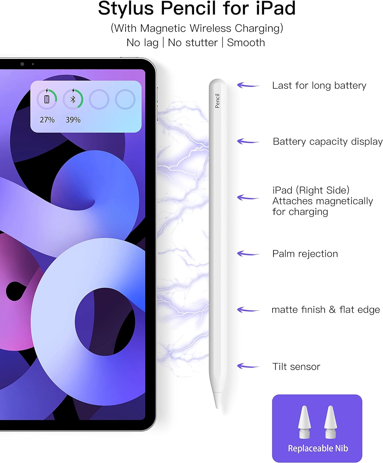 BOUTOP Pencil (2nd Generation) for Apple iPad 2018-2022, iPad Pencil with Palm Rejection, Tilt Sensor, Magnetic Charging for iPad Pro 12.9" 6/5/4/3, iPad Pro 11" 4/3/2/1, iPad Air 4/5, iPad Mini 6 etc