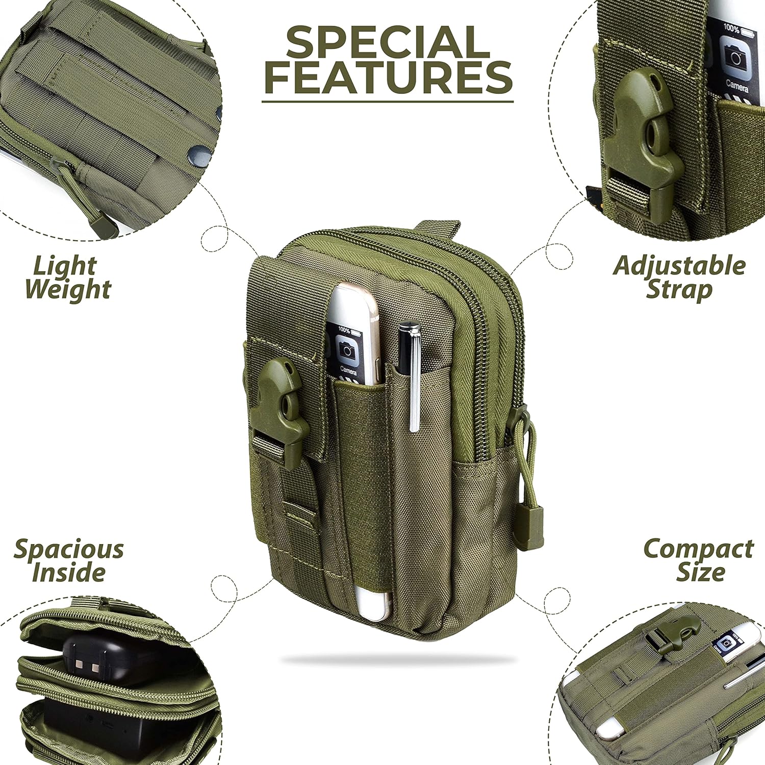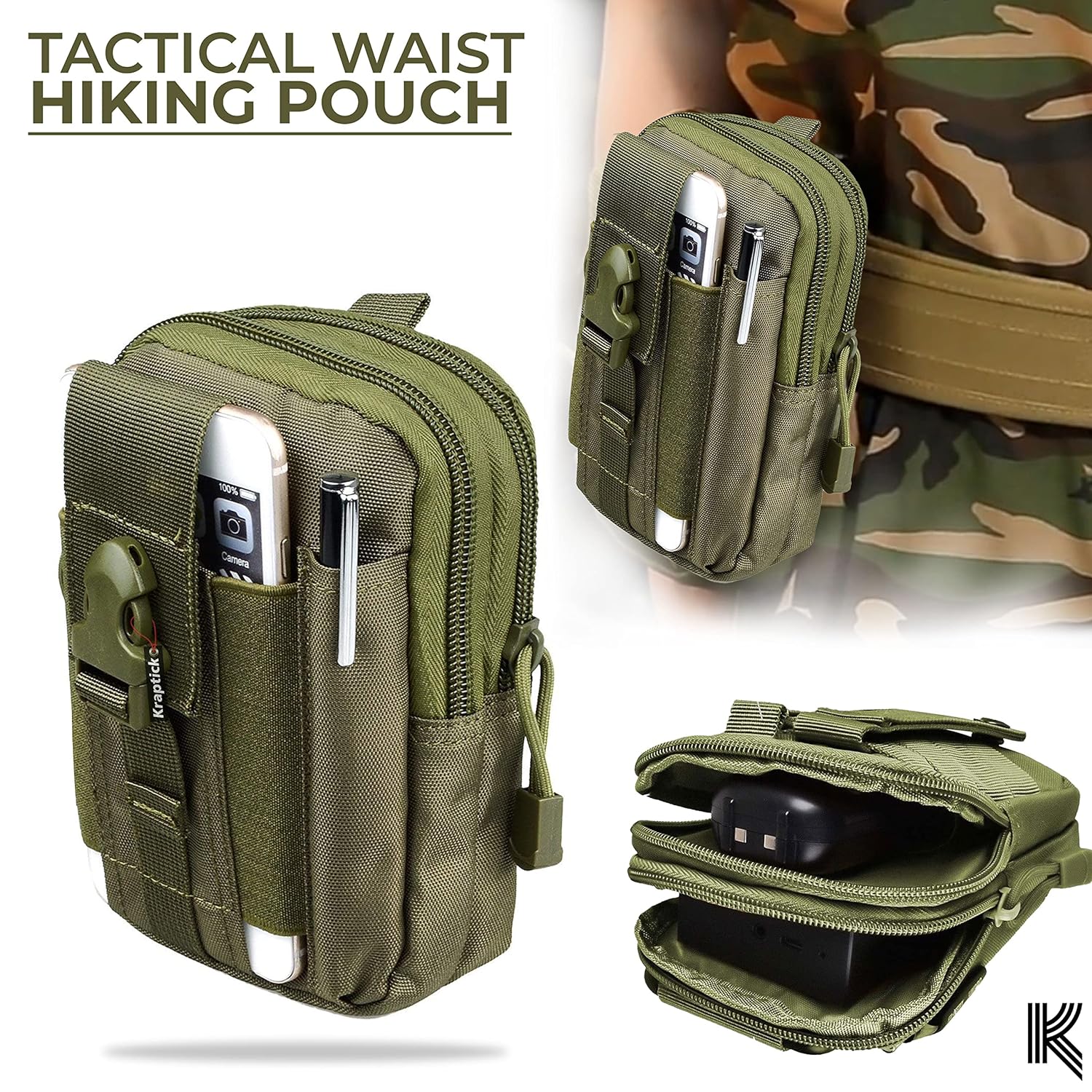 - Kraptick Multi-Purpose Water Resistant Waist Bag with Dual Compartment, Waist Bag Mobile Phone Holder, Waist Pack for Men, Women Camping Hiking Pouch (Army Green)