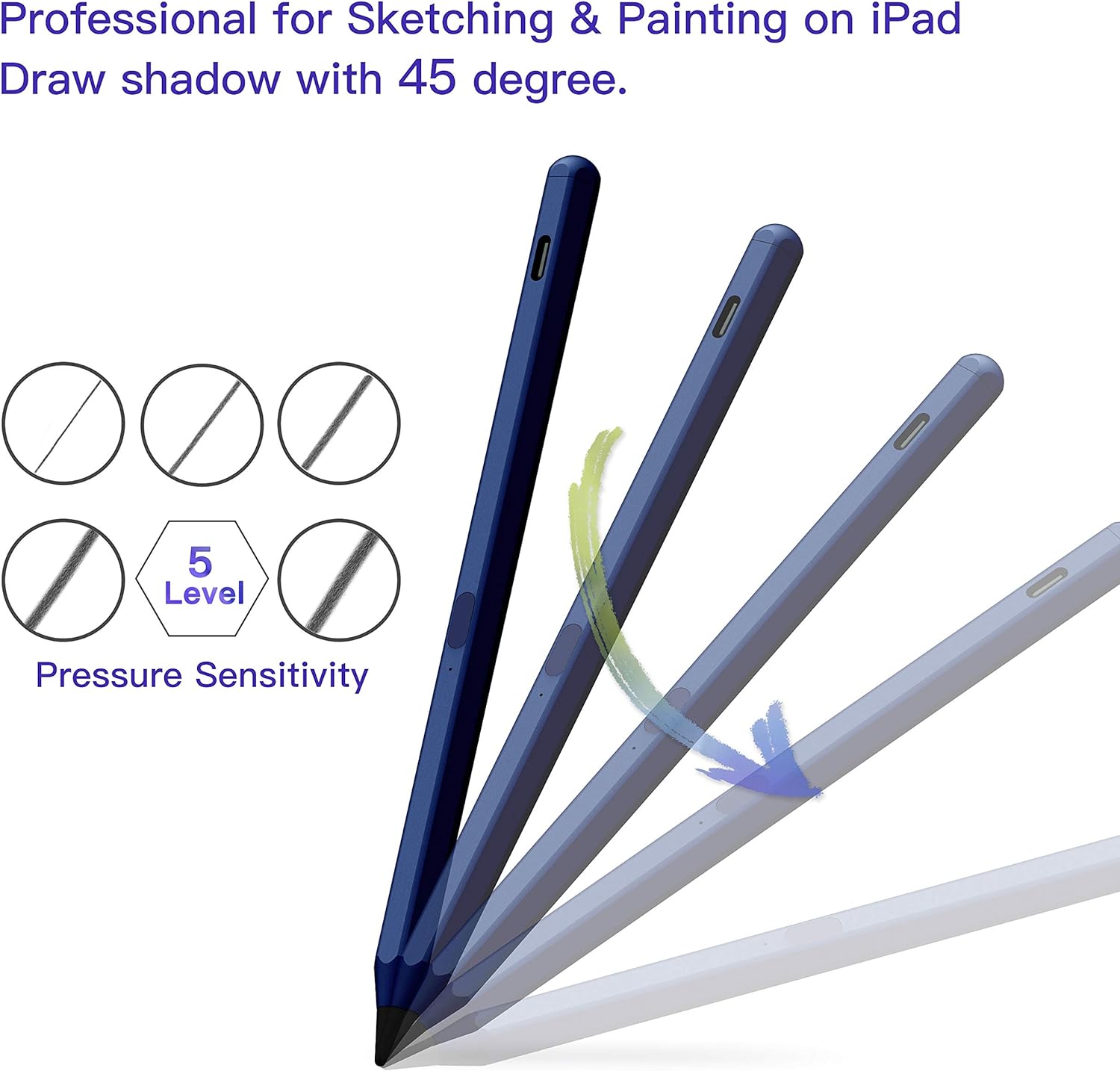 Stylus Pen for Apple iPad(2018-2023),With Tilt Sensitivity & Palm Rejection & Magnetic,Compatible iPad Pro 11/12.9(3/4/5th)/Air 3-4-5/Mini 5-6/iPad 6/7/8/9/10th Generation,Writing/Drawing ipad Pencil