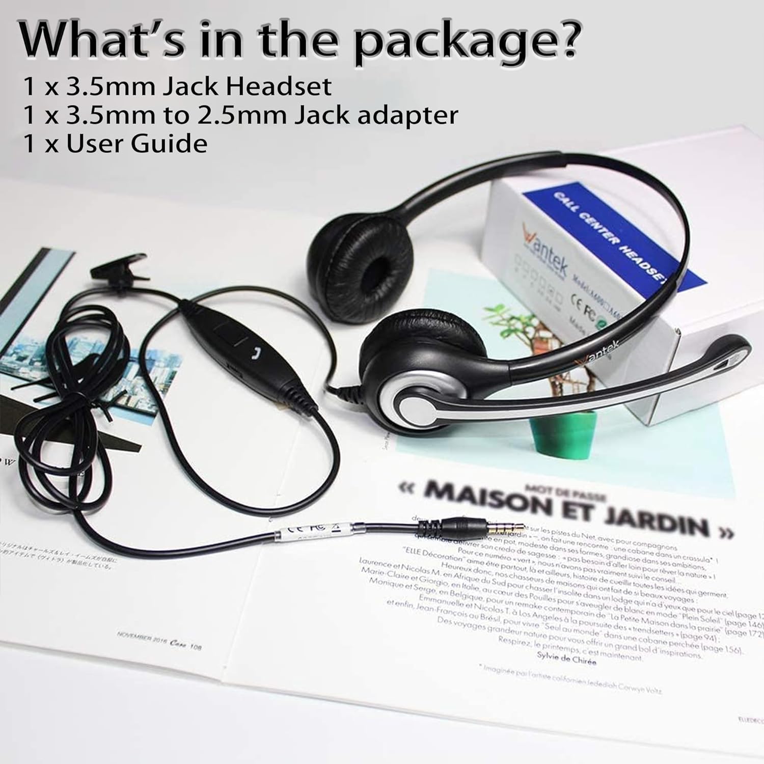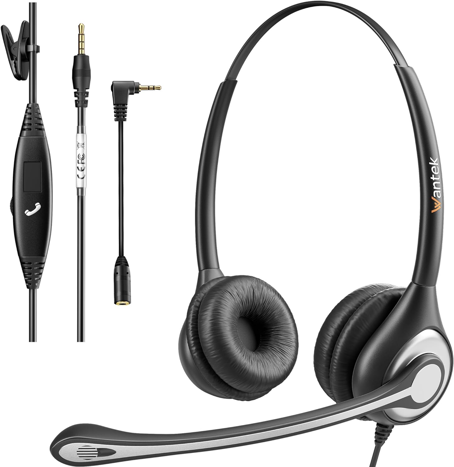 Wantek Cell Phone Headset with Microphone Noise Cancelling, Wired 3.5mm Computer Headphone for iPhone Samsung Android PC Laptop Tablet Skype Call Center Home Office, Ultra Comfort(F602J35)