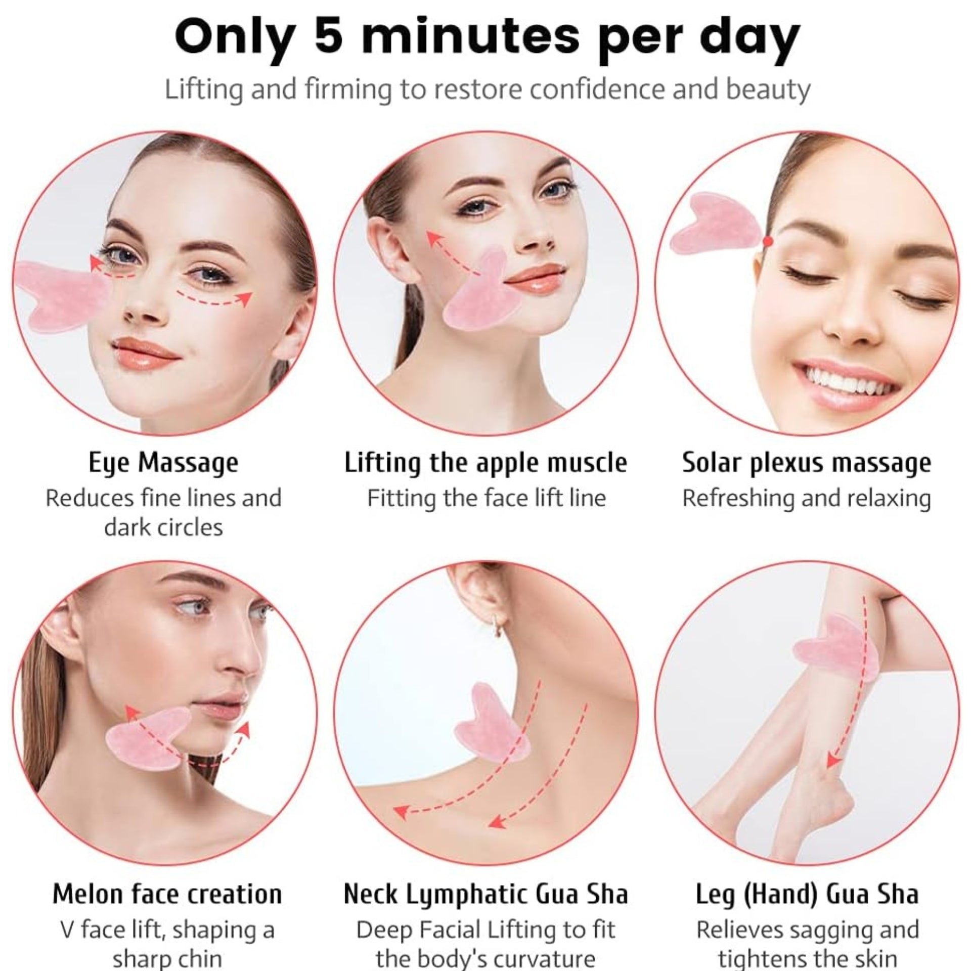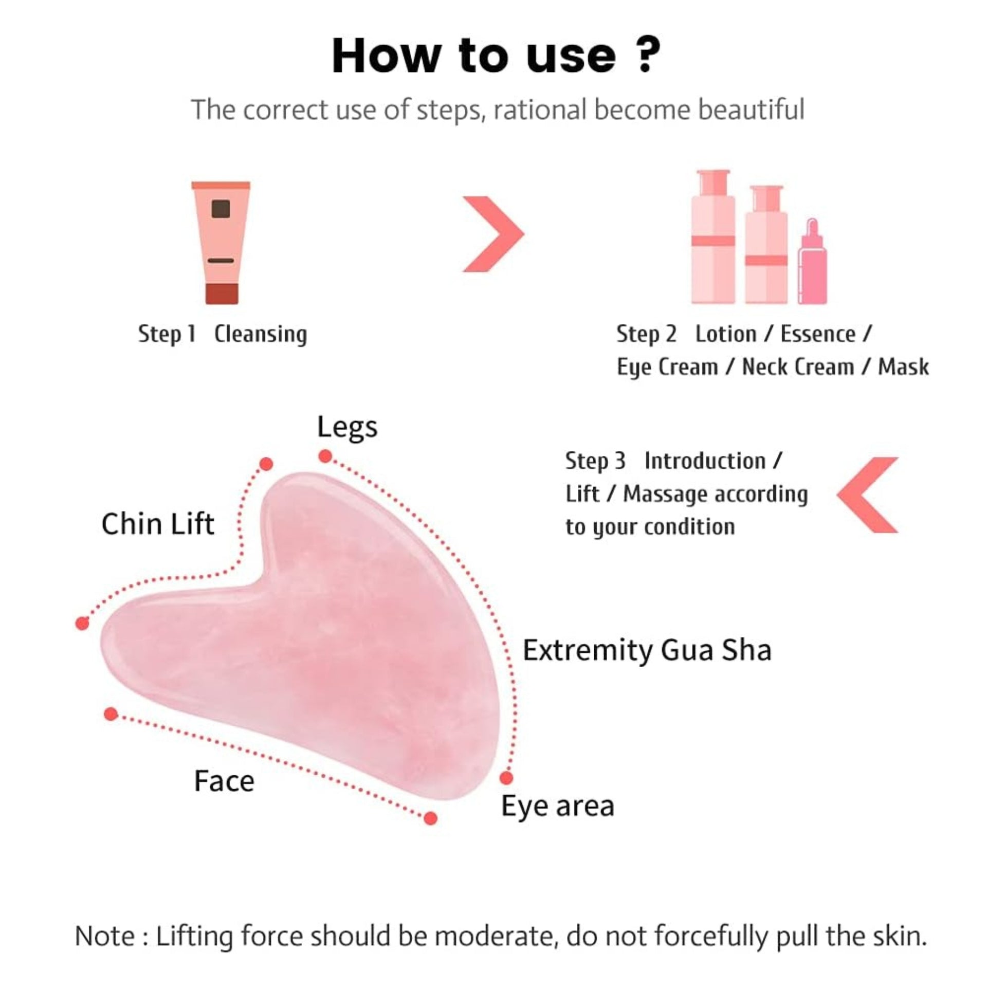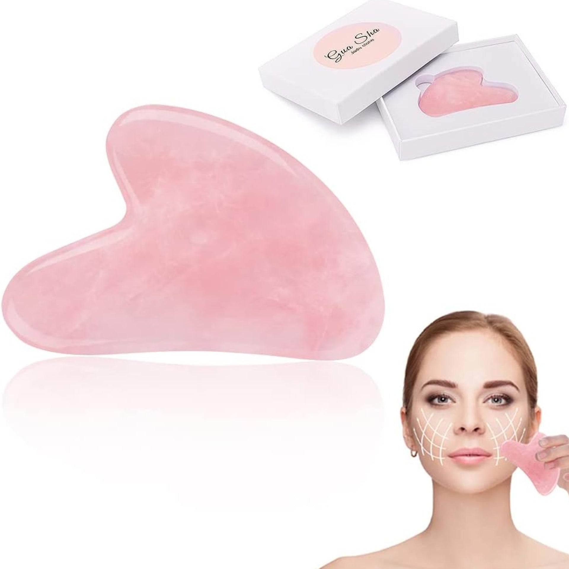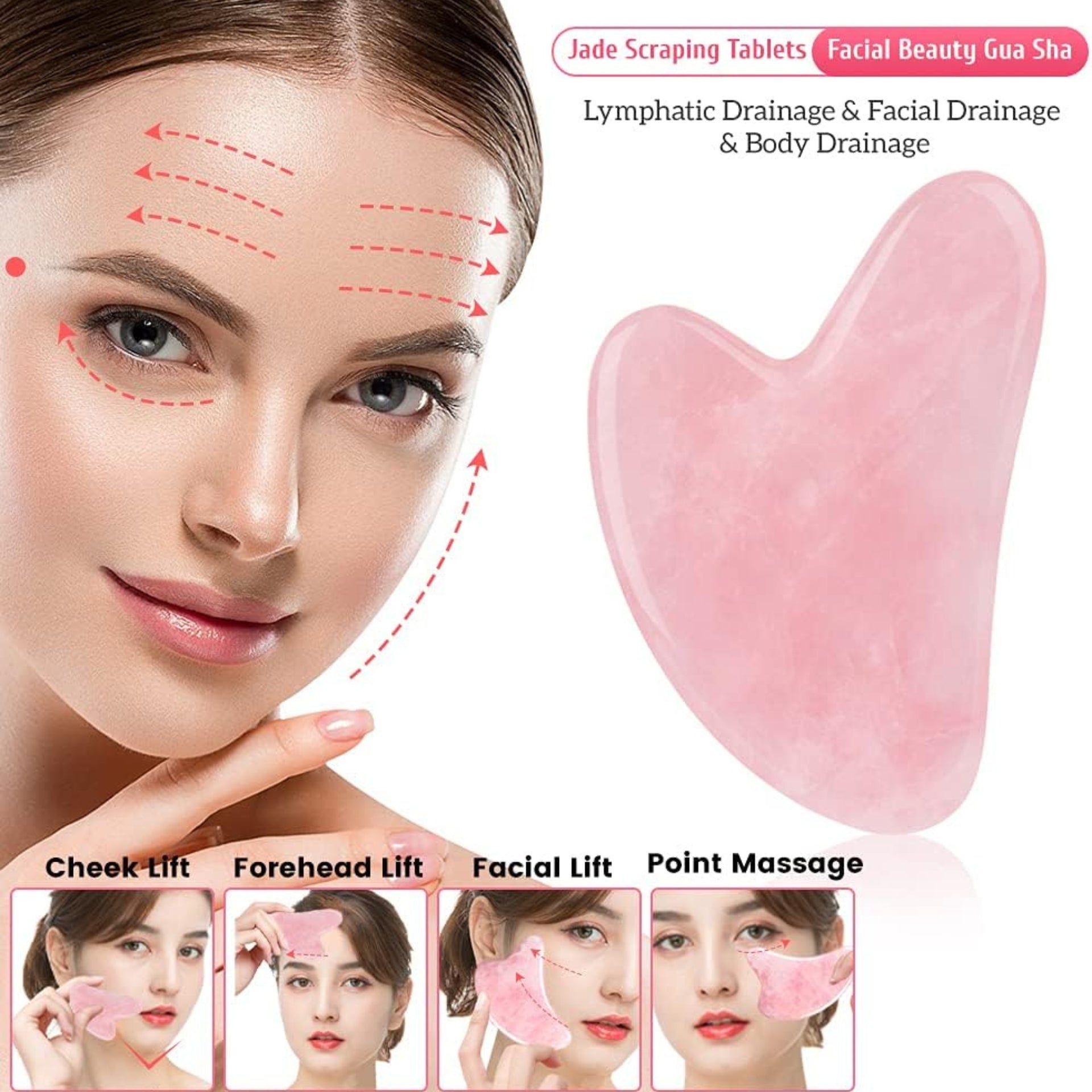 Gua Sha Stone Pink, Hillylolly Gua Sha Stone Face Pink, Gua Sha Stone Rose Quartz, Skin Tightening for Chin, Cheek, Neck, Back, Spa (Pink)