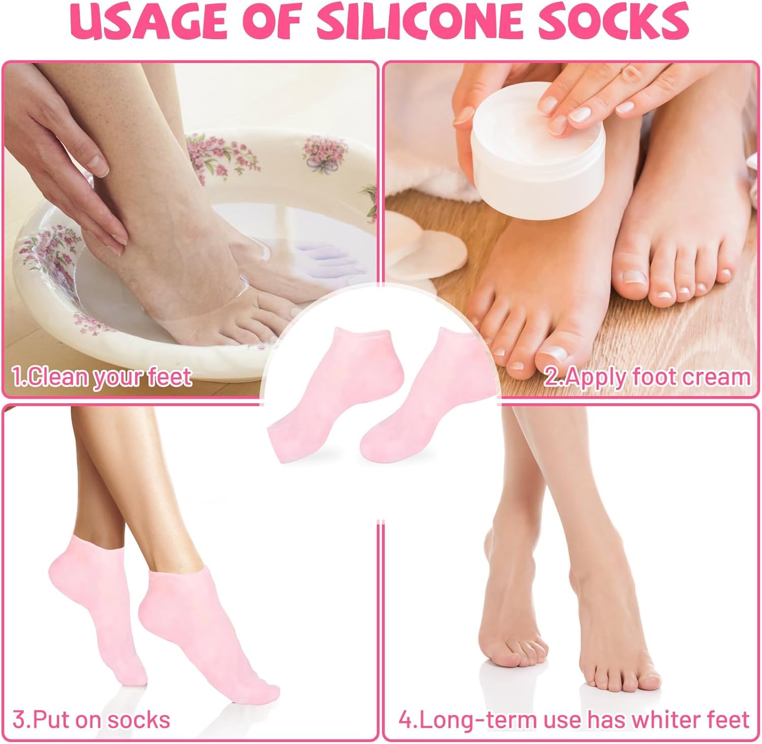 1 Pair Silicone Moisturizing Socks Women Foot Spa Pedicure Silicone Socks Foot Mask Exfoliating Beach Protective Gel Socks Anti Slip Aloe Socks for Dry Cracked Feet Calluses Foot Care