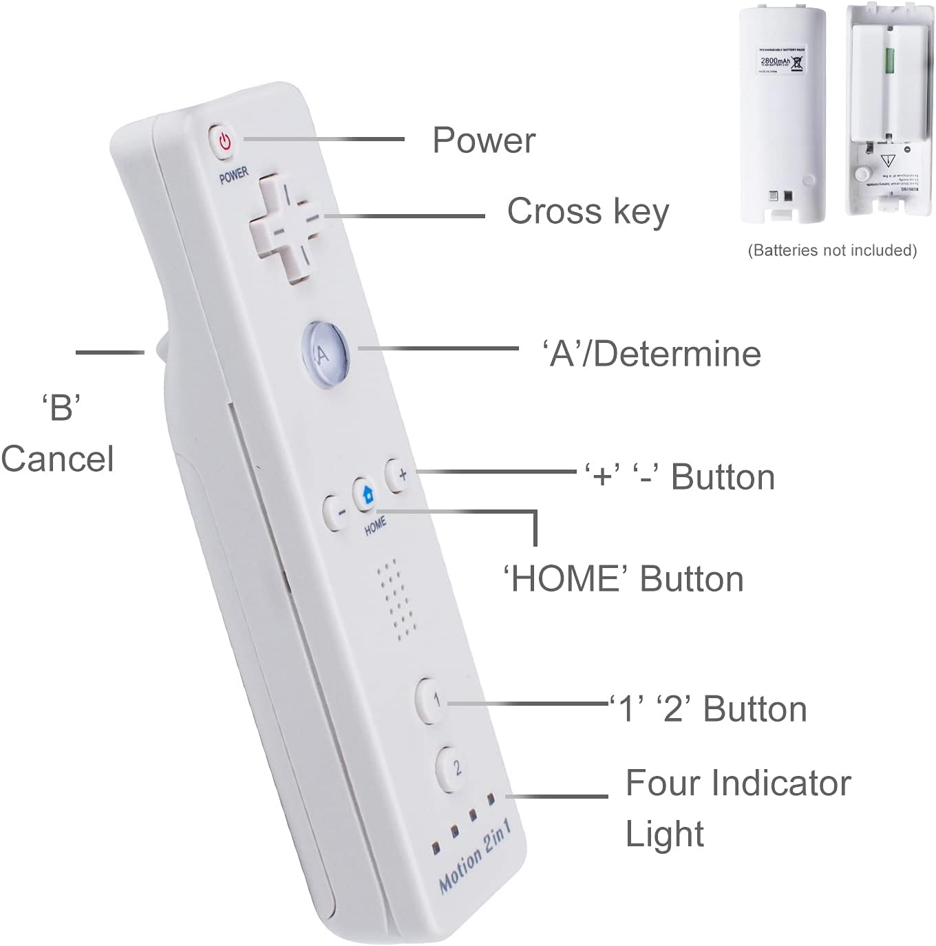 - Plug & Play -- Dock both of your remote and plug it into any USB port. Package contents: 2 pack wii remote motion plus, 2 Silicone Case and 2 Wrist Strap. Powered by 2 AA batteries (not included).